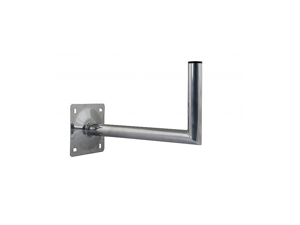 Najkakovostnejši kotni nosilec za anteno. Najboljše jeklo zagotavlja, da bo nosilec odporen na zunanje vremenske razmere več let, pokrovček na koncu cevi pa preprečuje vdor vode v notranjost cevi. Steber za montažo na fasado, zid ali drugo ravno površino.