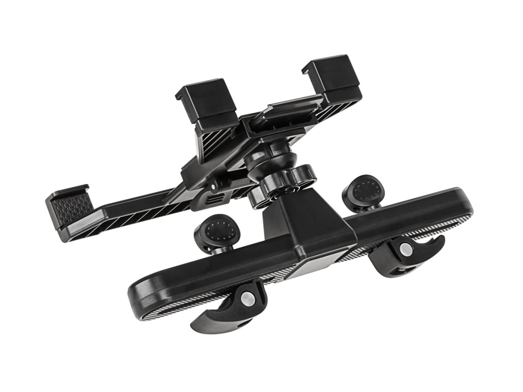 Univerzalni avtomobilski nosilec za tablične in druge elektronske naprave. Nosilec je nameščen na vzglavnik sedeža ali pritrjen na okno s pomočjo priseska. Zaradi trdnih elementov je nosilec izjemno trden in vzdržljiv. Sistem nastavljanja omogoča prilagoditev nosilca s tablico pod ustreznim kotom. Primeren je za vse tablice z diagonalo 7” – 10,2”. Dovolj je, da nosilec pritrdite na vzglavnik ali okno, brez potrebe po uporabi orodja.