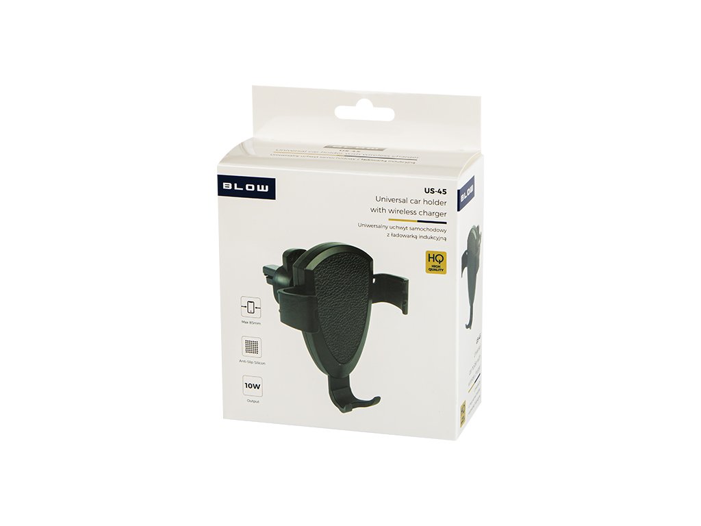 Gravitacijski avtomobilski nosilec z indukcijskim polnjenjem za montažo na prezračevalni rešetki avtomobila. Izdelek je izjemno enostaven za uporabo, dovolj je, da nanj položite telefon in čeljusti se bodo samodejno zaprle. Ima trikotno konstrukcijo, ki zagotavlja stabilnost med vožnjo, velike možnosti prilagajanja in gumijaste obloge. Poleg tega ima posebno odprtino, ki omogoča priključitev polnilnika.