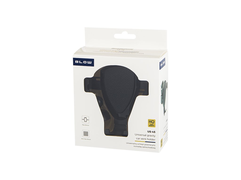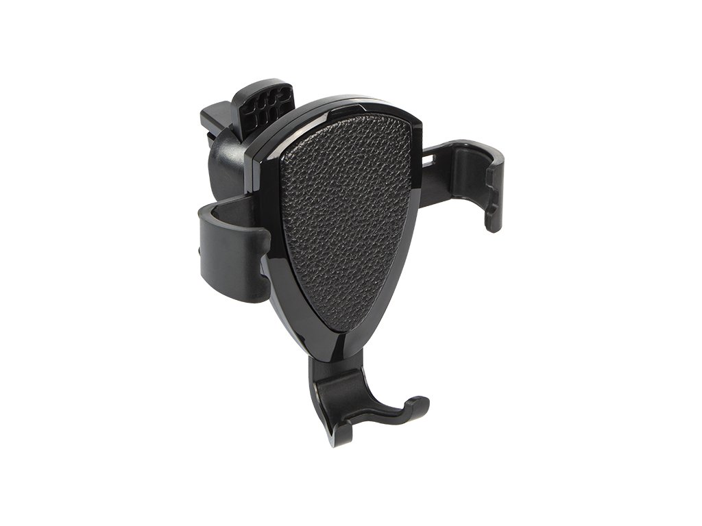 Gravitacijski nosilec za avto za montažo na prezračevalni rešetki avtomobila. Izdelek je izjemno enostaven za uporabo, telefon preprosto položite nanj in čeljusti se bodo samodejno zaprle. Ima trikotno konstrukcijo, ki zagotavlja stabilnost med vožnjo, velike možnosti prilagoditve in gumijaste blazinice. Poleg tega ima posebno odprtino, ki omogoča priključitev polnilnika.