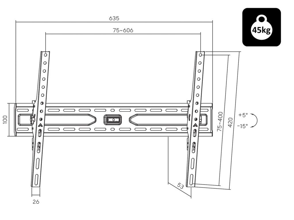 - Standard VESA: od 200 mm x 200 mm do 600 mm x 400 mm