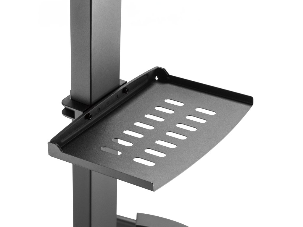Nosilec je opremljen s polico z največjo nosilnostjo 5 kg, ki jo je mogoče nastaviti na primerno višino. Idealno za avdio-video naprave, dekoderje ali igralne konzole.
