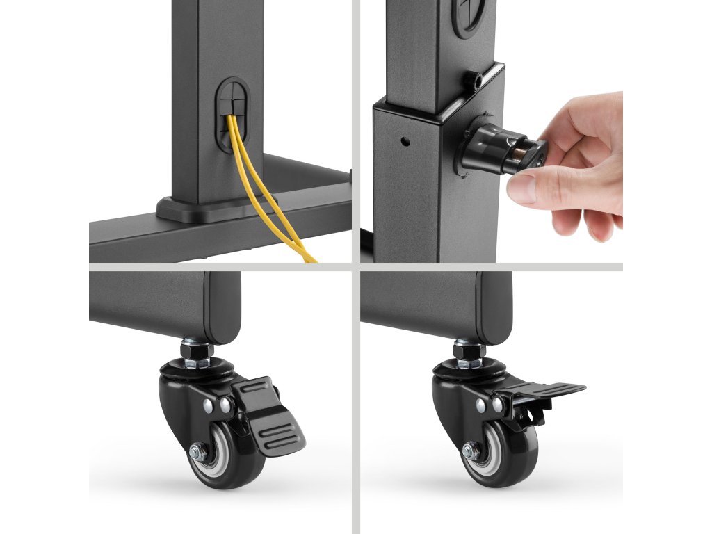 Nosilec Cabletech je popolna rešitev za vsakogar, ki ceni udobje, funkcionalnost in estetiko. Možnost horizontalnega nastavljanja od +10° do -10° omogoča popolno prilagoditev kota gledanja. Višino držala je mogoče nastaviti od 1020 mm do 1320 mm, kar zagotavlja maksimalno udobje uporabe.