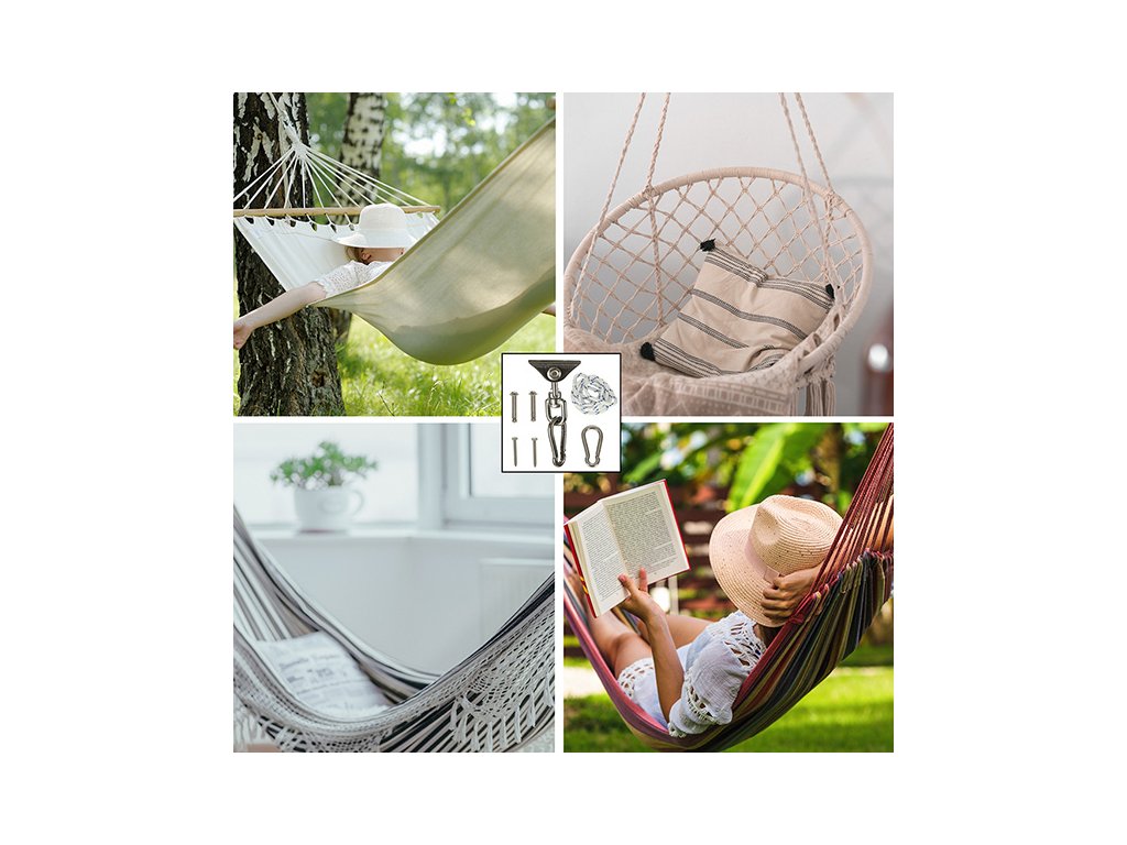 Počitek na vrtu bo nedvomno prijetnejši, če boste imeli visečo mrežo ali štorkljino gnezdo. Vendar pa morate upoštevati, da boste za obešanje takšnih predmetov zagotovo potrebovali ustrezno opremo. Na srečo ta komplet vsebuje vse potrebne dele za obešanje vaše sanjske brazilske viseče mreže!