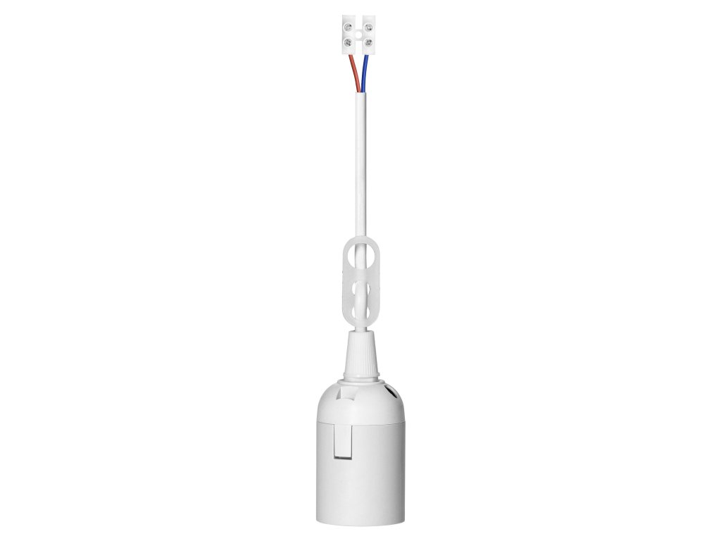 E27 kabelska vtičnica je bela standardna svetilka, zasnovana za montažo žarnice E27. Je priljubljena rešitev, ki se uporablja med prenovami in nadgradnjami svetlobnih instalacij, ko je potrebno začasno namestiti razsvetljavo brez senčnika ali drugega dekorativnega elementa.Naše E27 lamelne vtičnice imajo enostavno in vzdržljivo zasnovo. Namestijo se s pomočjo vijakov. Priključni blok je vključen.