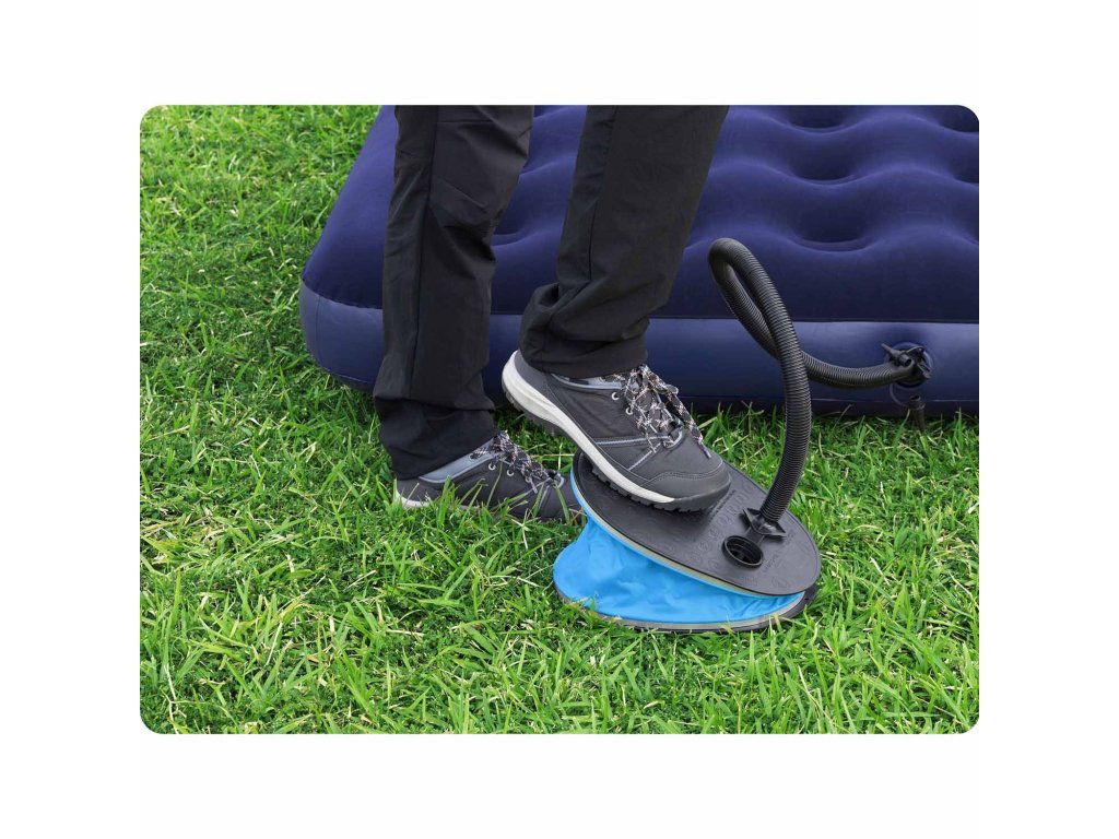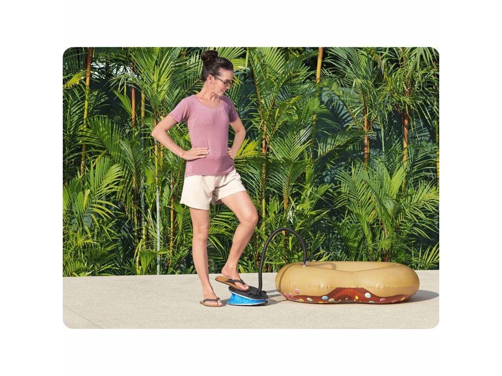 Nožna tlačilka Bestway hitro pripravi napihljiv izdelek za uporabo. Tri zamenljive šobe zagotavljajo združljivost z vsemi napihljivimi izdelki. Nožna tlačilka Bestway se lahko uporablja tudi za izpihovanje zraka iz že pripravljenega ležišča ali otroške igrače.