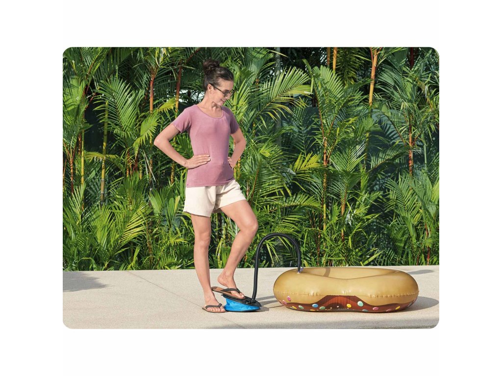 Če imate dovolj utrujajočega črpanja napihljivih izdelkov, se odločite za nakup praktične nožne tlačilke znamke Bestway. Ima 3 zamenljive konice, ki jo naredijo združljivo z vsemi napihljivimi izdelki. Ker ta tlačilka ne potrebuje priklopa na električno vtičnico, jo lahko vzamete s seboj kamorkoli – na izlet, v šotor, ali k jezeru.