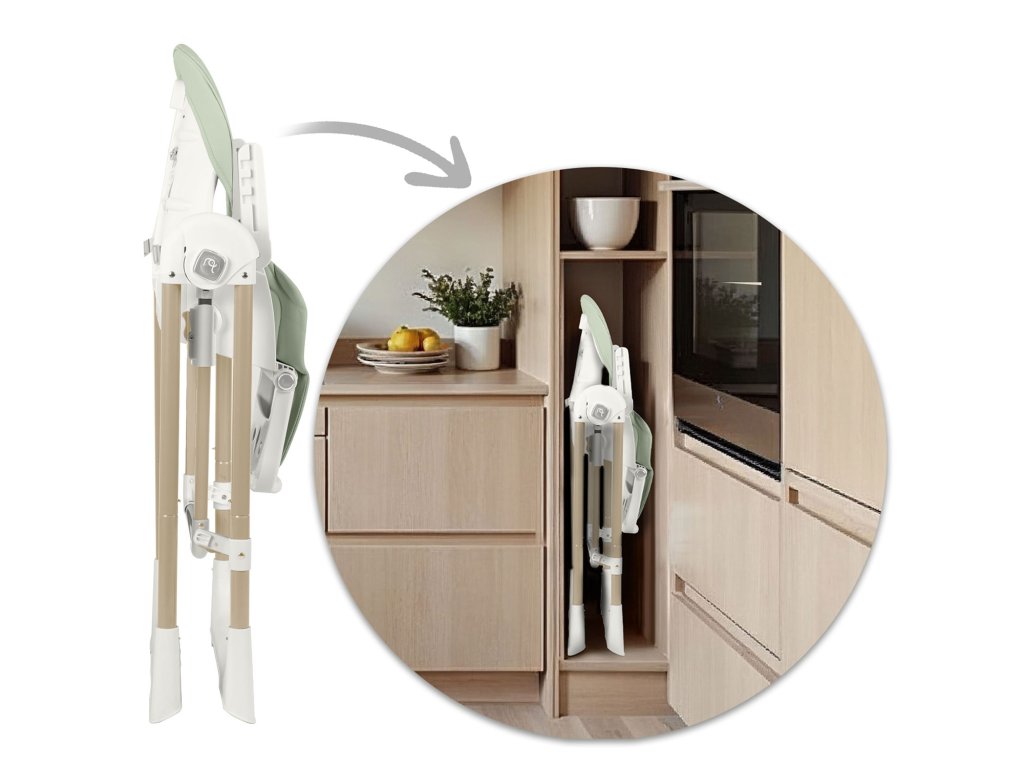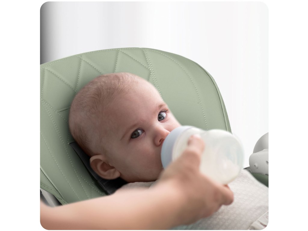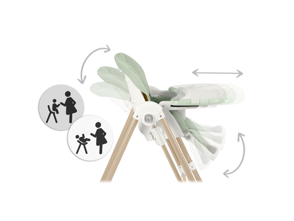 Lahko nahranite malčka na stolu s pladnjem in po obroku ga odstranite, spustite sedež in spremenite stol v gugalni stol, da se otrok lahko mirno spočije.