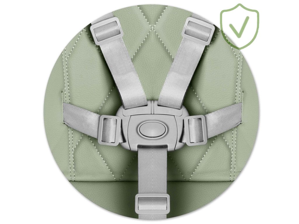 Zanesljivi in preizkušeni pet-točkovni varnostni pasovi preprečujejo, da bi otrok sam zapustil stol in se izpostavil tveganju padca.