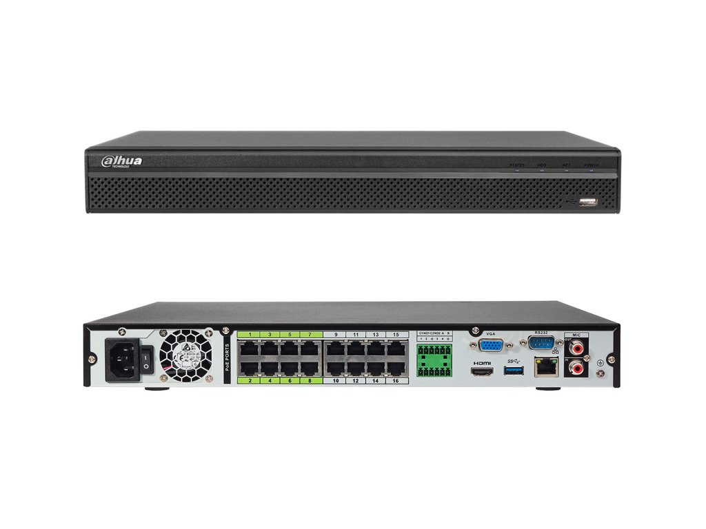 Model NVR5216-16P-4KS2E je 16-kanalni IP rejestrator. Na napravo je na voljo brezplačna programska oprema Smart PSS, ki omogoča natančno upravljanje celotnega sistema. Velika prednost rejestratorja je možnost oblaka P2P. Oddaljen ogled omogoča mobilna aplikacija gDMSS/iDMSS , dostopna za telefone s sistemom ANDROID in iOS. Shranjevanje posnetkov videa omogoča povezavo 2 trdih diskov SATA s kapaciteto do 10 TB(vsak). Poleg tega je bil rejestrator opremljen z 1 vhodom USB 2.0, 1vhodom USB 3.0, 1 x izhod HDMI, 1 x izhod VGA.