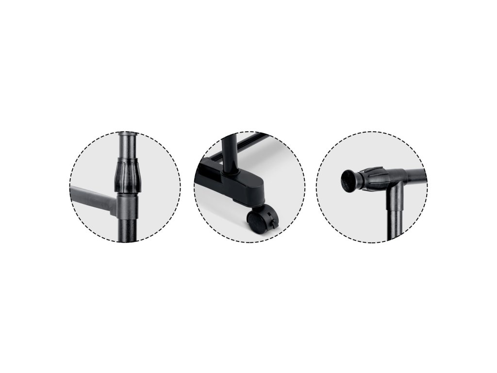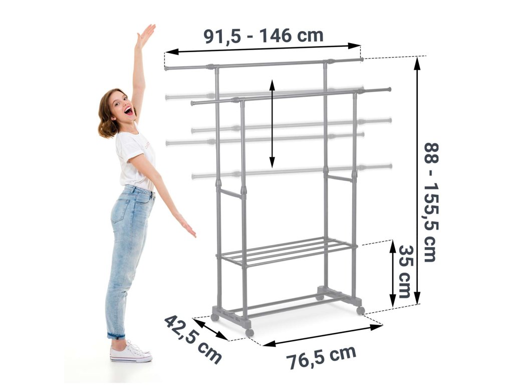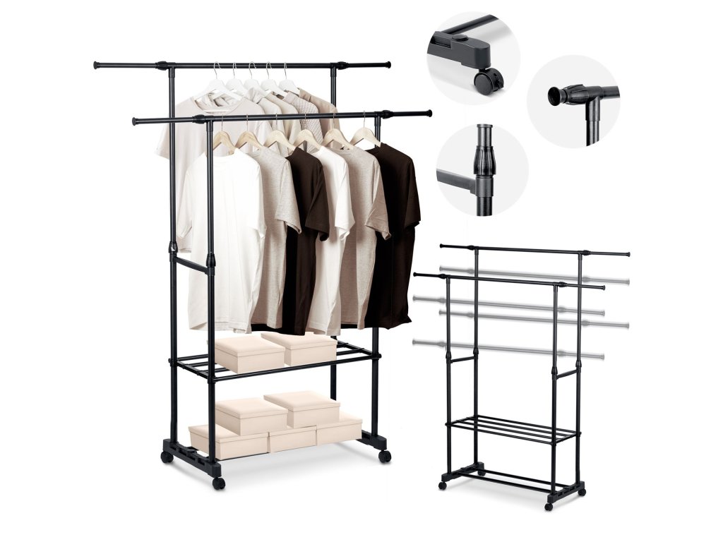 Predstavljeni obešalnik ima dva držala , na primer za kravate in podobno. Je praktičen za študente, ob prenovi se dobro znajde v domači garderobi, pa tudi za plašče za goste. Idealno za družino z otroki zaradi nastavljive ergonomske višine.