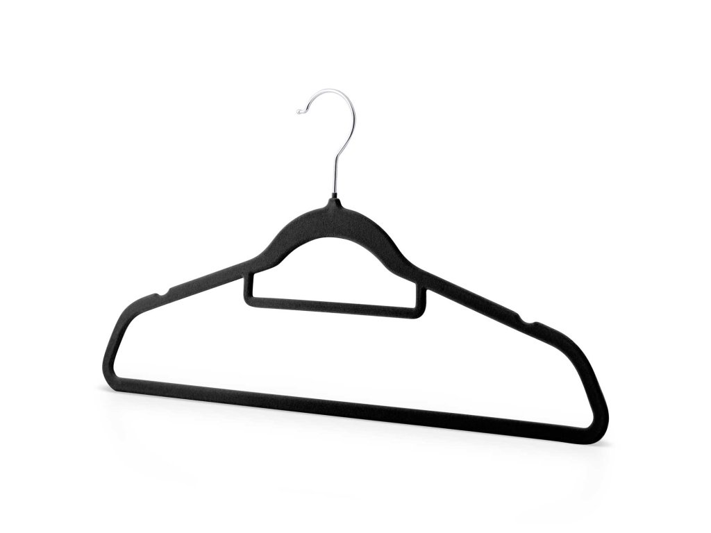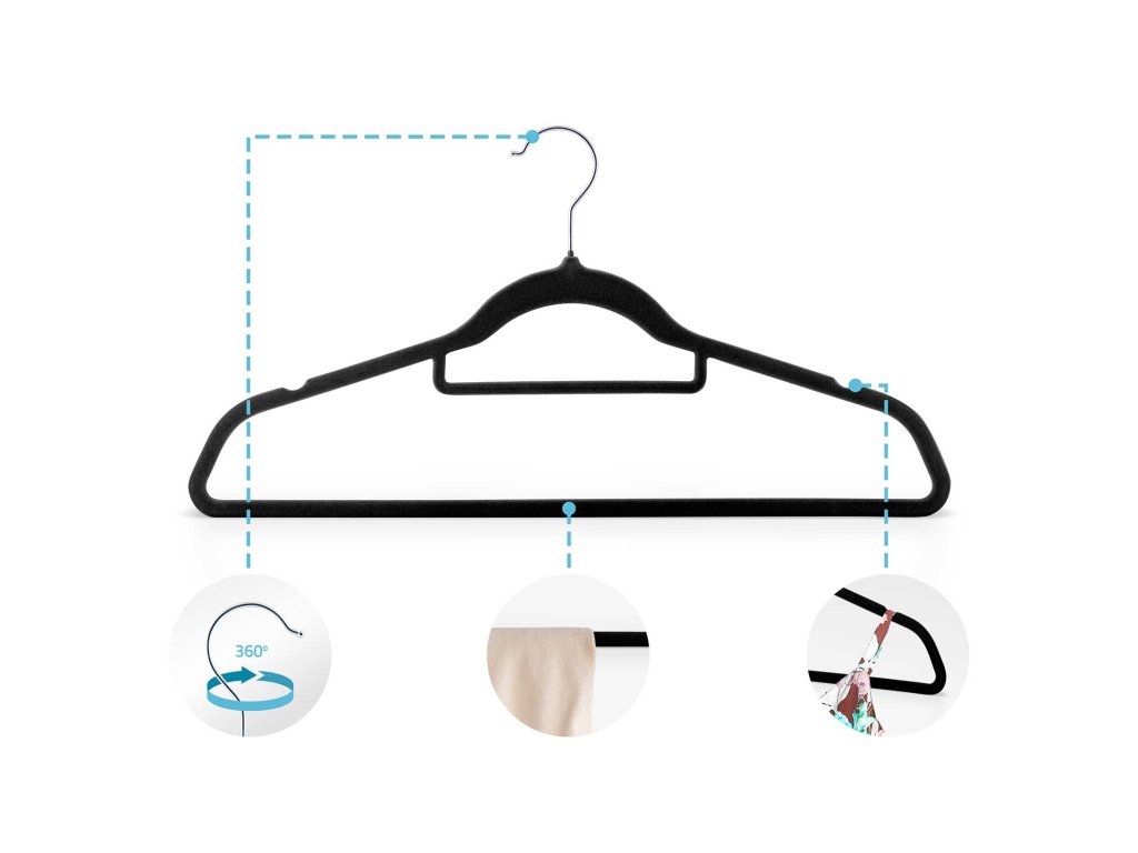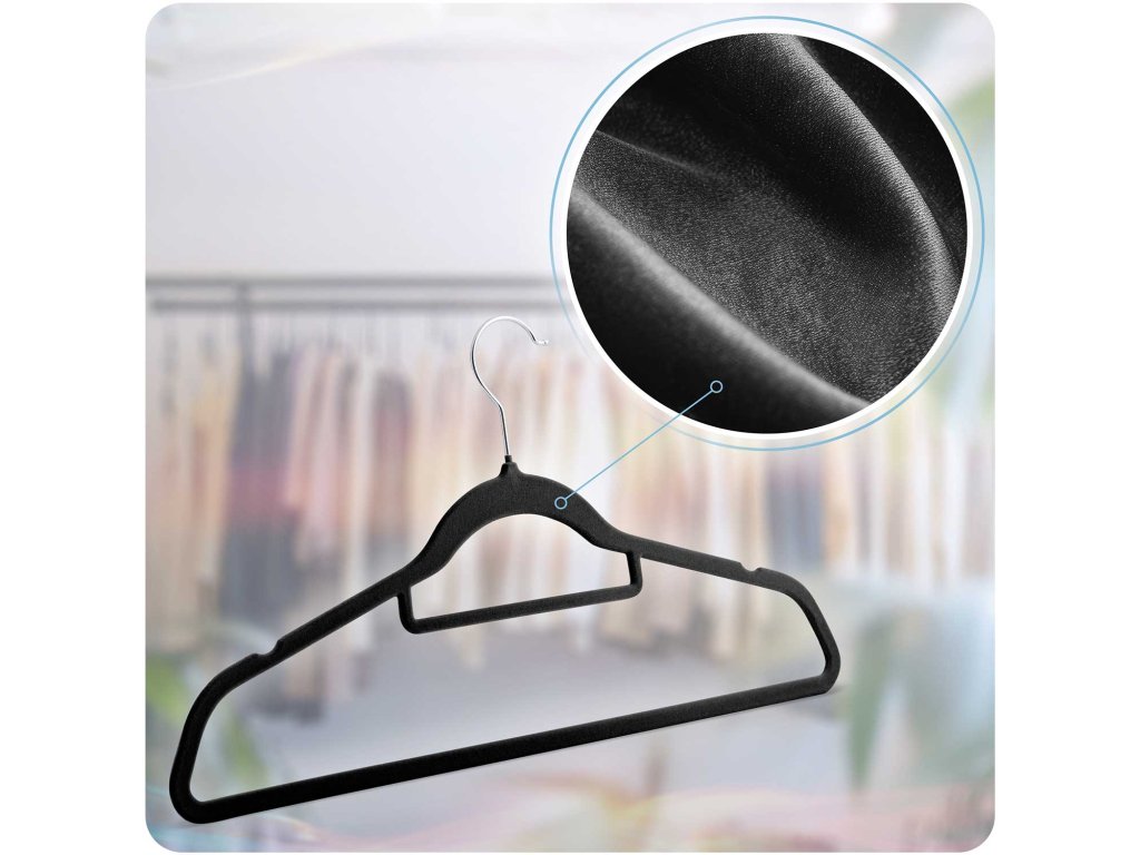 - Žametna prevleka: Žamet ima nedrsečo funkcijo, ki preprečuje zdrs oblačil z obešalnika. Poleg tega dodaja estetski videz in naredi obešalnik bolj luksuzen na otip.