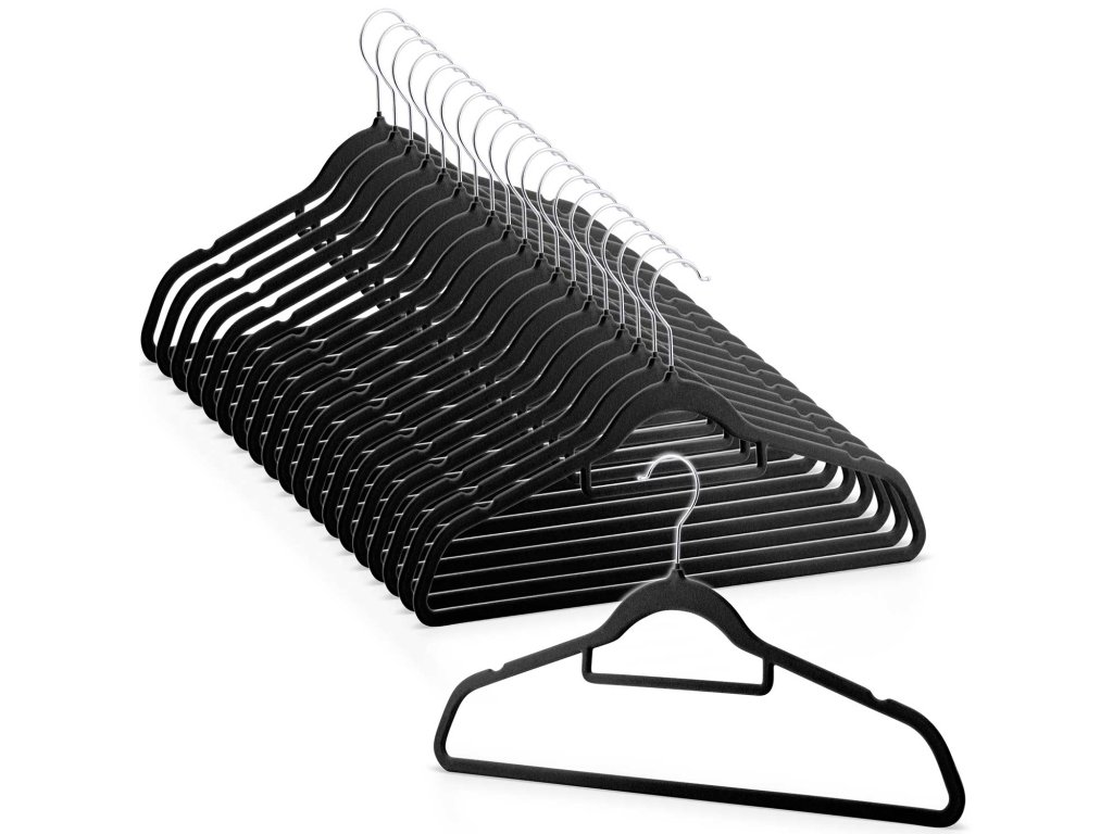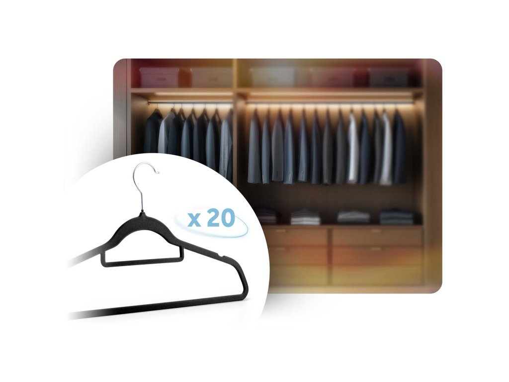 Organizirajte svojo garderobo v stilu s kompletom 20 žametnih obešalnikov Massido.