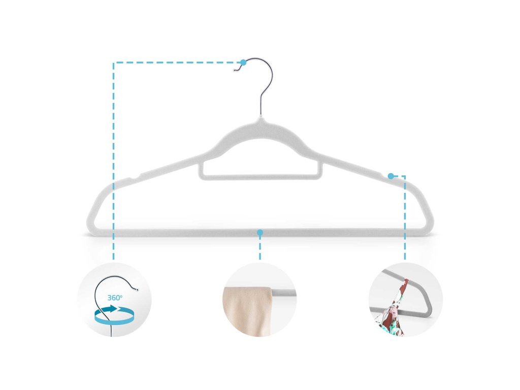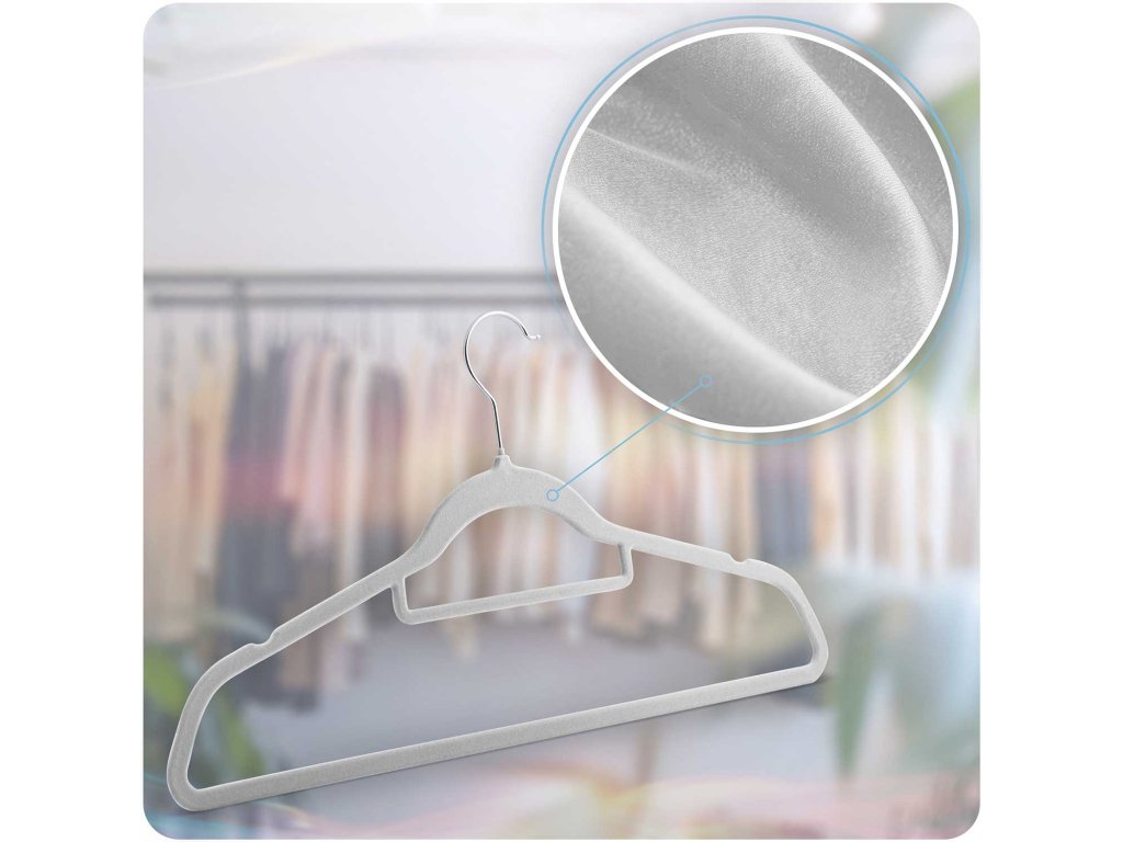 Žamet ima protizdrsno funkcijo, ki preprečuje, da bi oblačila zdrsnila z obešalnika. Poleg tega doda estetski videz in naredi obešalnik bolj luksuzno na dotik.