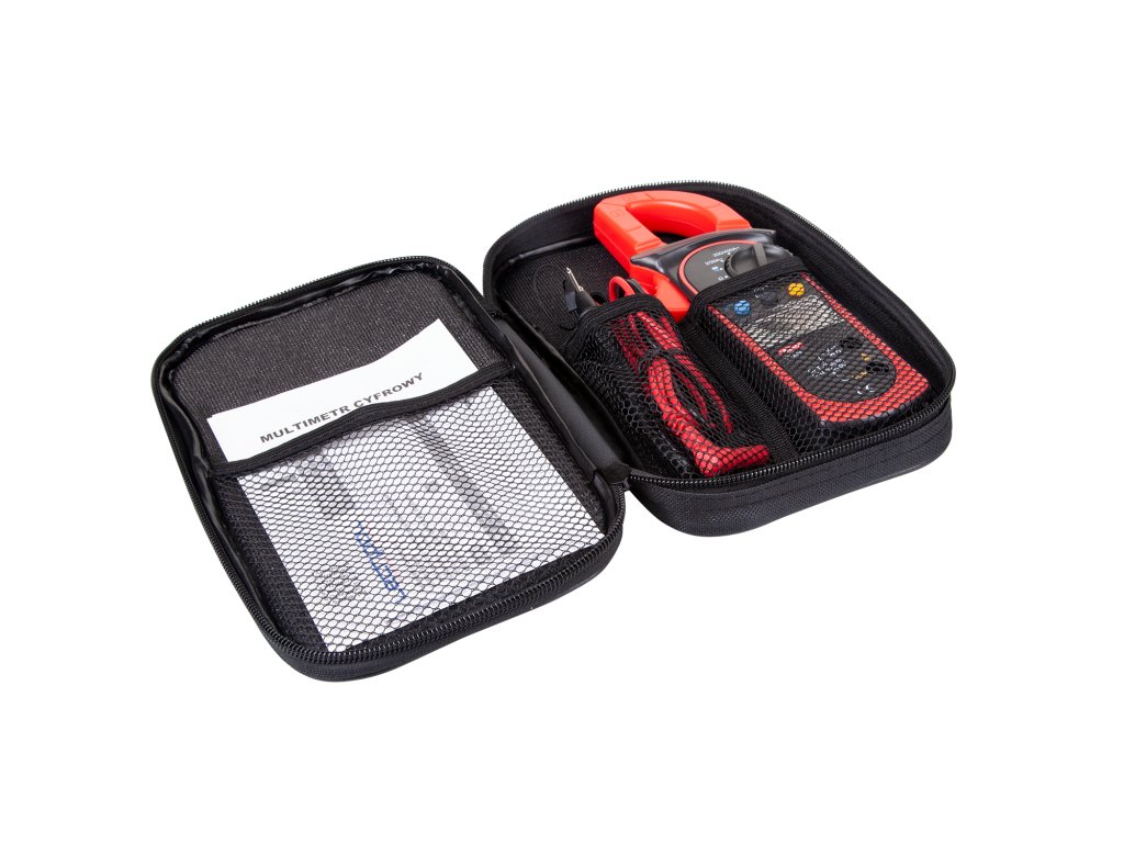 MERILNA OBMOČJA Napetost enosmerne DC: 200 mV / 2 V / 20 V / 200 V / 600 V ±(0,8%+1) Napetost izmenične AC: 2 V / 20 V / 200 V / 600 V ±(1,2%+5) Tok izmenične AC: 2 A / 20 A / 200 A / 400 A ±(1,5%+5) Upornost: 200 Ohm / 2000 Ohm / 20 kOhm / 200 kOhm / 2 MOhm / 20 MOhm ±(1%+2) Preizkus diod Preverjanje neprekinjenosti vezja DODATNE FUNKCIJE Samodejno spreminjanje merilnih obsegov Samodejni izklop Zamrznitev zadnje prikazane vrednosti Funkcija prikaza največje vrednosti Maksimalni prikaz: 2000 SPLOŠNE ZNAČILNOSTI Vhodna impedanca enosmerne napetosti: pribl. 10 MOhm Število meritev: pribl. 3/s Napajanje: baterija 2x 1,5 V (R03) Največja širina čeljusti: 28 mm Zaslon: 35,6 x 18 mm Neto teža: 220 g Dimenzije: 210 x 75,6 x 30 mm V kompletu: baterije, merilni kabli, etuiMERILNA OBMOČJA