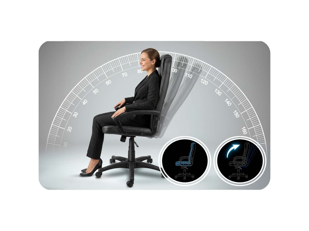 Samo rahlo nagnite naslon, da razbremenite vretenca, sprostite mišice in ponovno pridobite energijo – tudi med dolgega dne v pisarni!