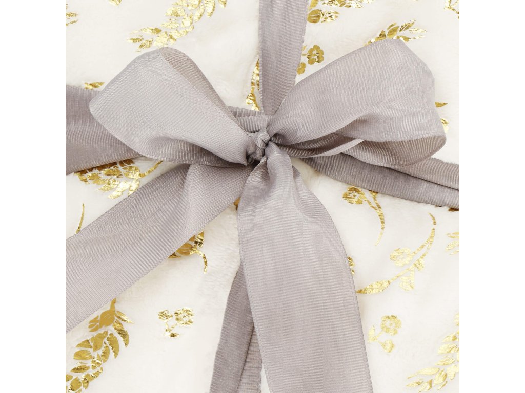 - Odeja je ovita v elegantni sivi trak