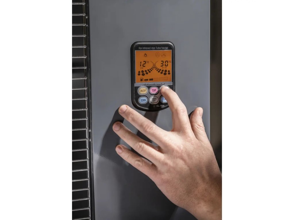 Grelna naprava se odlikuje tudi z enostavno uporabo, zahvaljujoč digitalnemu krmilnemu pultu s preglednim LCD zaslonom. Uporabnik ima možnost natančnega nastavitve temperature ter prilagoditve časa delovanja s pomočjo časovnika in možnosti samodejnega izklopa, kar zagotavlja udobje in prilagodljivost pri uporabi.