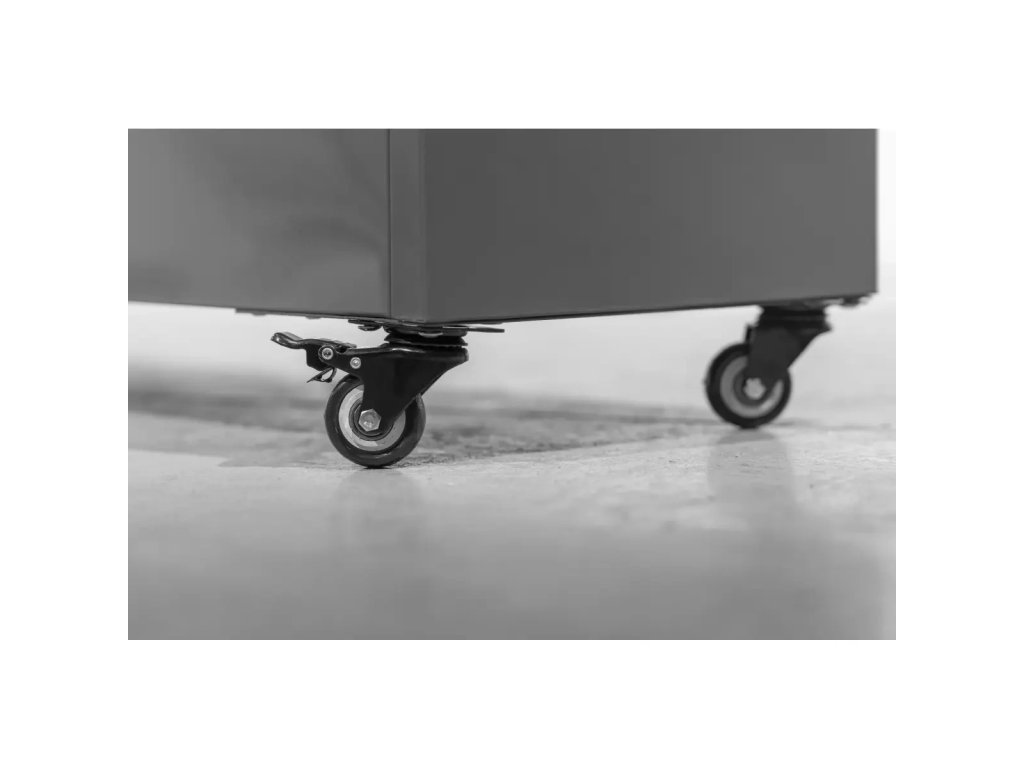 - Stabilna podlaga s štirimi vrtljivimi kolesi – omogoča enostavno premikanje naprave, hkrati pa zagotavlja stabilnost med delovanjem