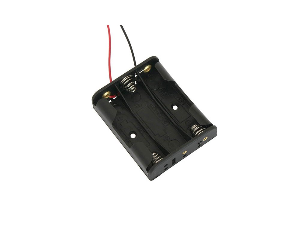 Škatlica za tri baterije tipa R6 (AA, Mignon) s priključnimi žicami.