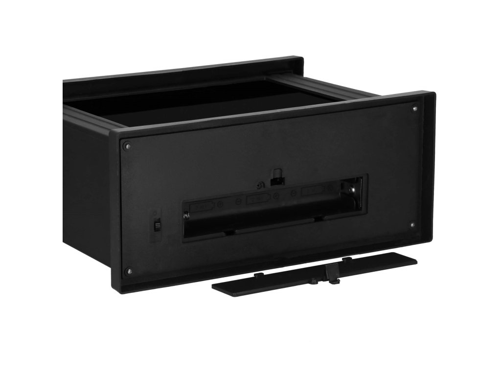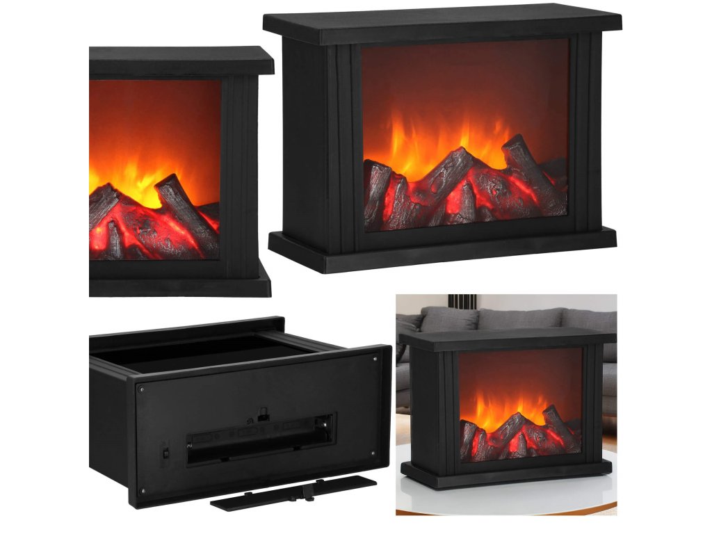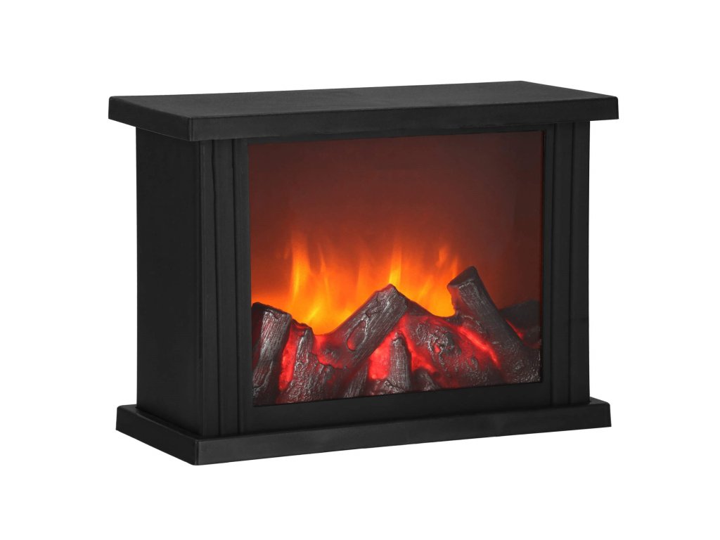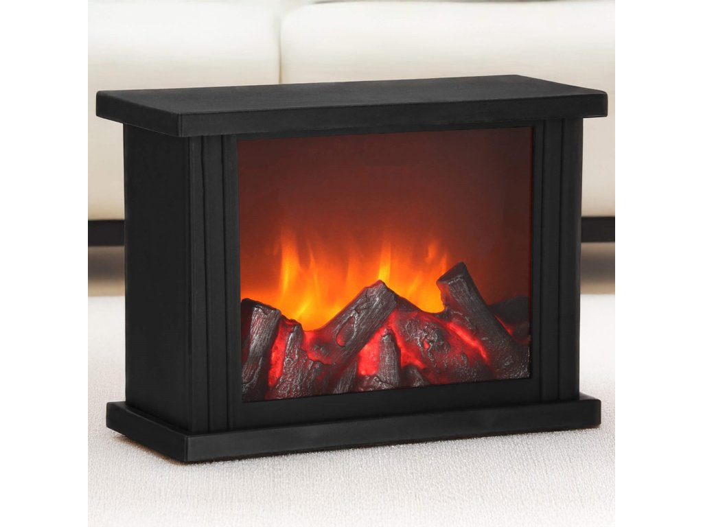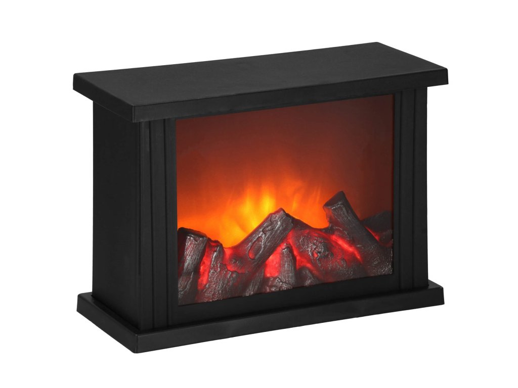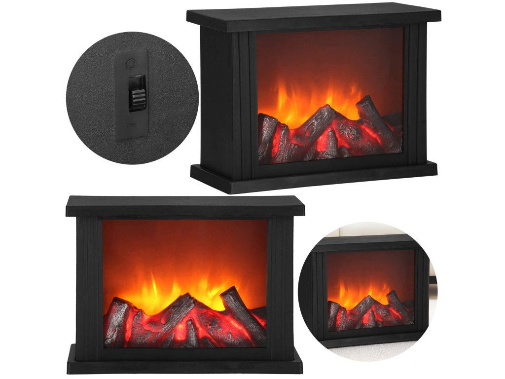 - Za prozornim steklom je imitacija gorečega lesa. Ko je svetilka vklopljena, se ustvari učinek žarečega lesa in premikajočih se "plamenov" nad njim.