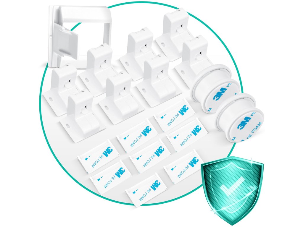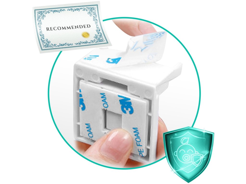 Praktična, majhna in estetska varnostna naprava, ki preprečuje otroku nenadno odpiranje omare ali predala .