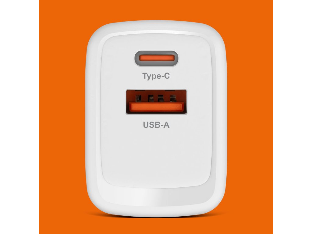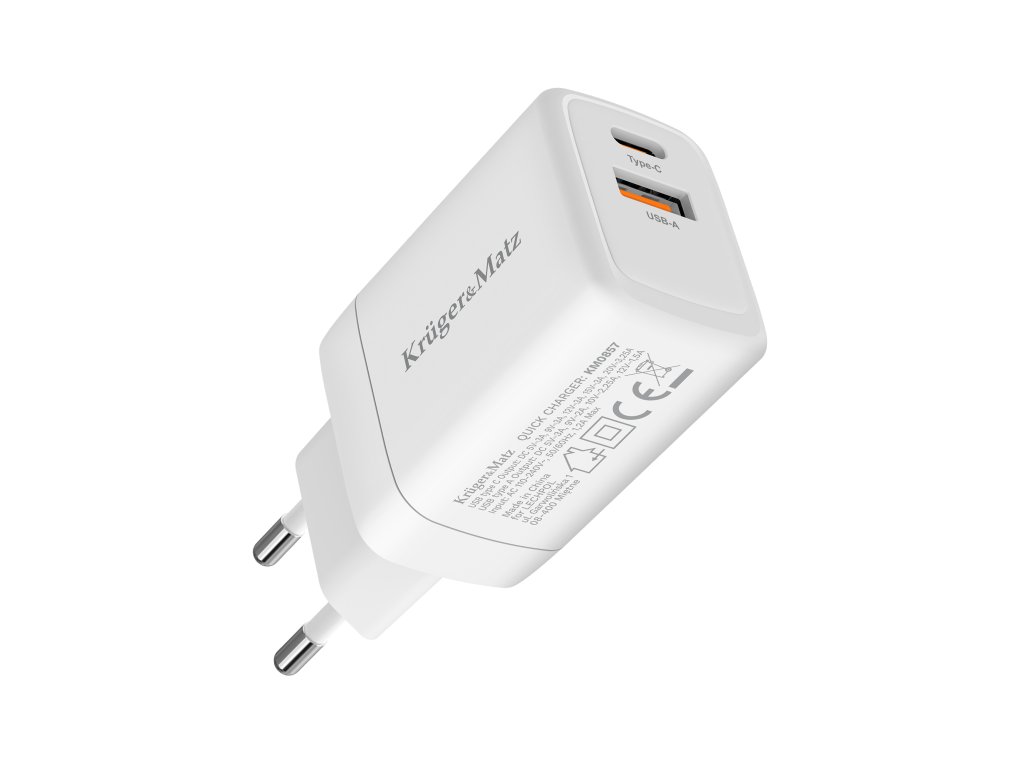 Kompaktno ohišje omrežnega polnilca KM0856 je opremljeno z dvema priključkoma: USB tipa A in USB tipa C. Zahvaljujoč temu lahko z enim samim aparatom nadomestite več drugih napajalnikov, če imate doma ustrezne tipe kablov.
