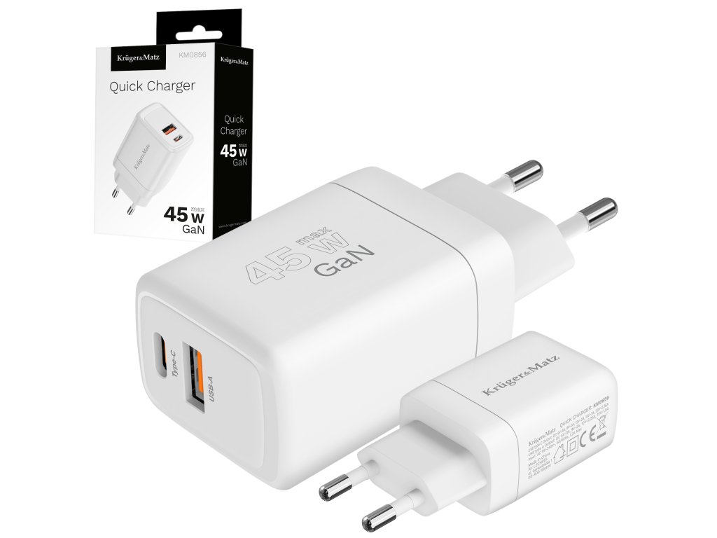 Omrežna polnilna naprava GaN Kruger&Matz 45 W s funkcijo Power Delivery in Quick Charge