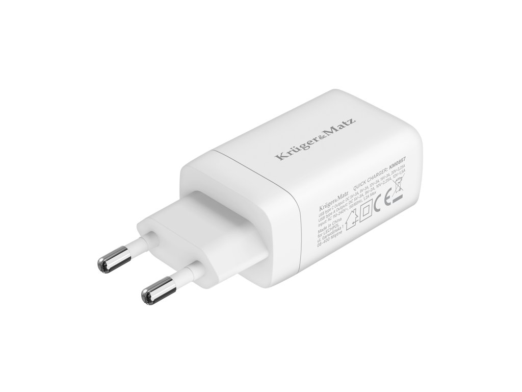Omrežni polnilnik Kruger&Matz je odlična izbira tako za dom kot za pisarno. Z univerzalnimi priključki in tehnologijo hitrega polnjenja je ustvarjen za sodelovanje z večino priljubljenih naprav, kot so pametni telefoni, tablice ali navigacijski sistemi GPS.