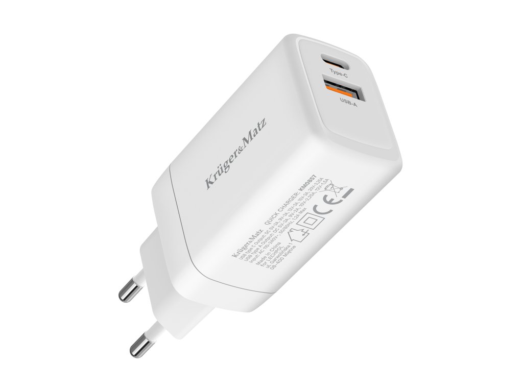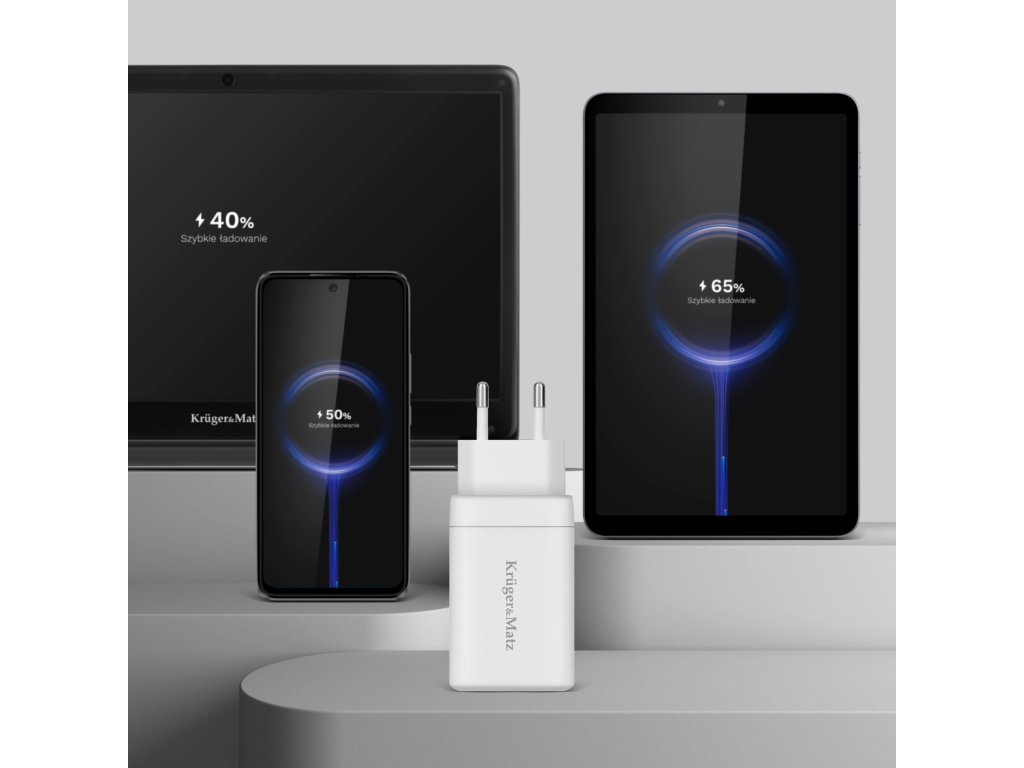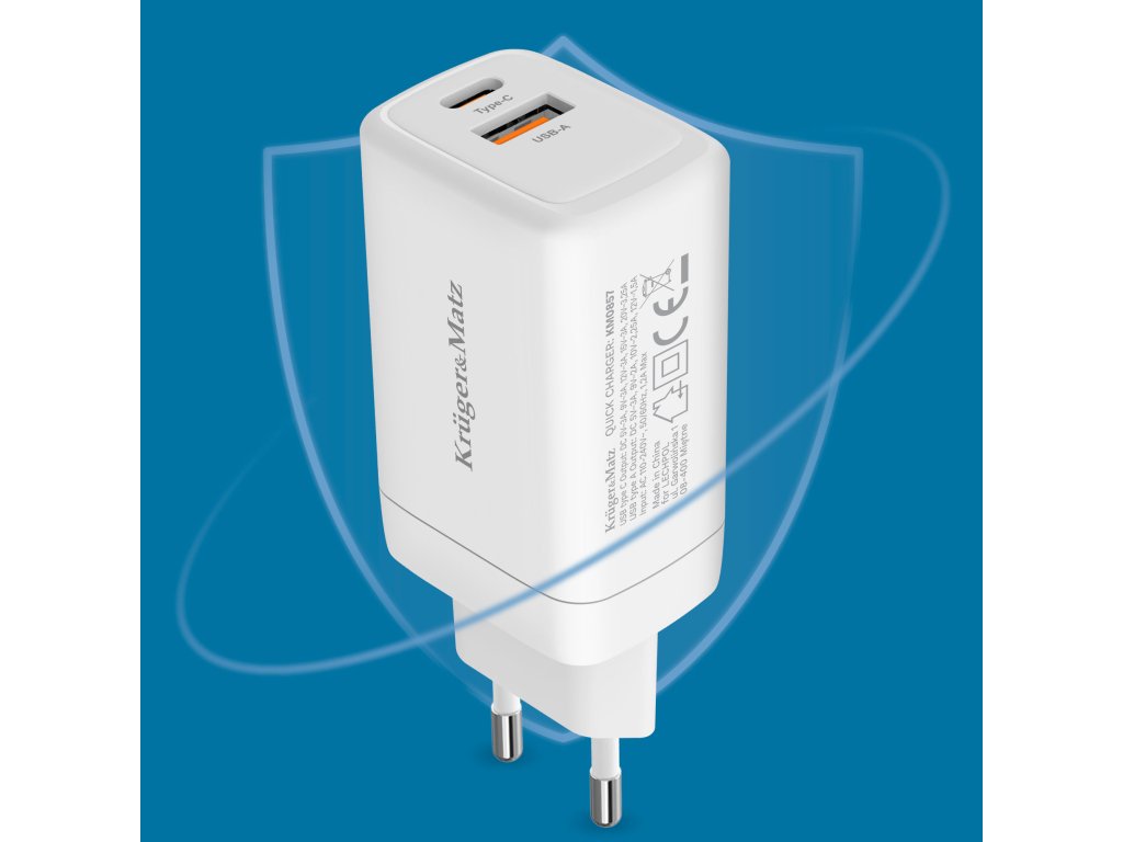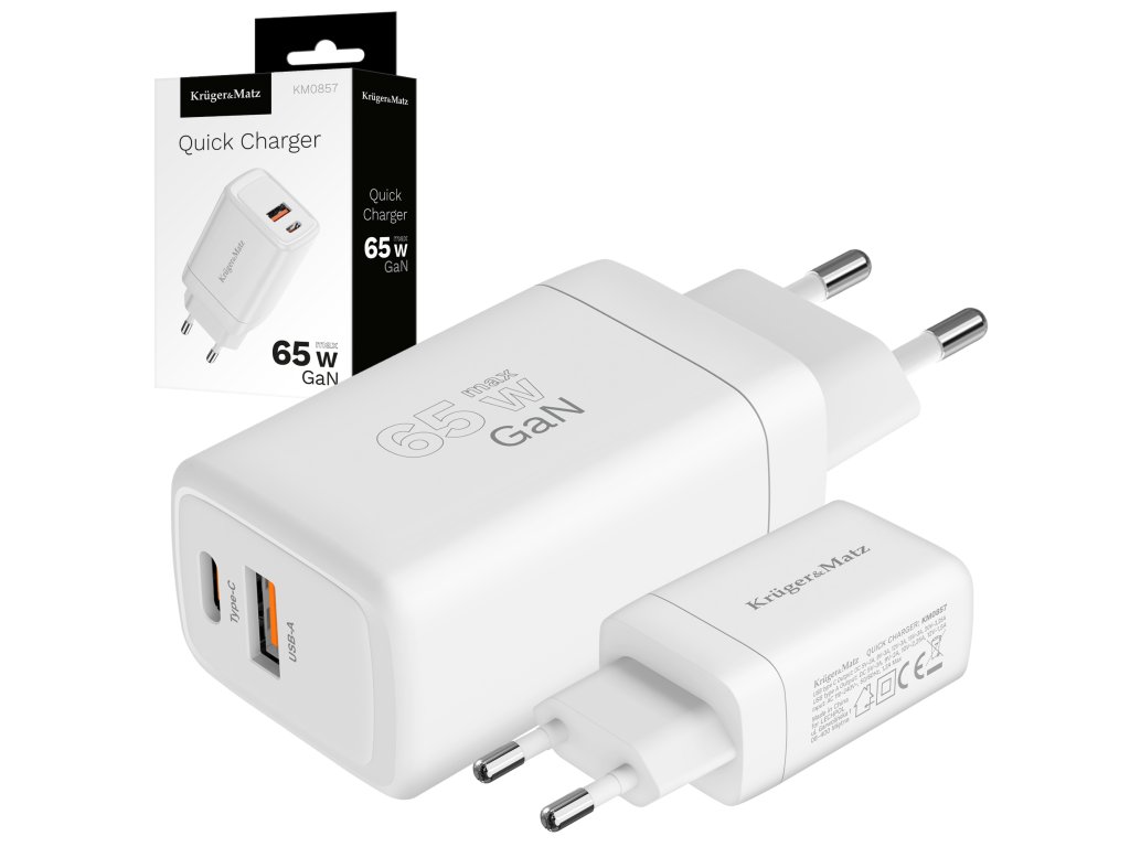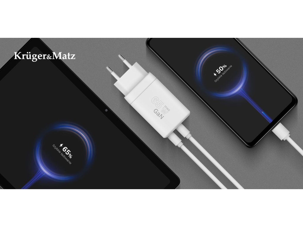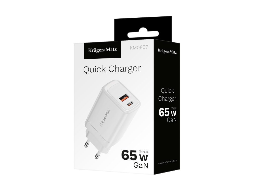 Z visoko močjo 65 W in tehnologijama Power Delivery in Quick Charge omogoča polnilnik hitro in učinkovito polnjenje vaših naprav, prilagajanje izhodne moči potrebam priključene naprave. Z uporabo tehnologije GaN je USB polnilnik Kruger&Matz bolj učinkovit in kompakten. Ta rešitev poveča energetsko učinkovitost in zmanjša toploto, ki se oddaja med polnjenjem. Tako omogoča hitrejše polnjenje ob ohranjanju majhnih dimenzij in veliko daljši življenjski dobi.