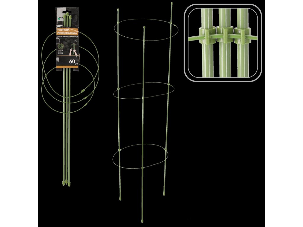 Krožna podpora s stebrički je odlična izbira za lončnice in gredice. Zaradi trdne kovinske zasnove in plastičnega premaza je zelo odporna na poškodbe in neugodne vremenske razmere, prav tako pa zaradi zelene barve postane skoraj nevidna na ozadju rastline. Koristna je na primer pri gojenju: borovnic, hortenzij. Preprečuje upogibanje rastline in omogoča harmonično rast. Krožna podpora je lahko zanimiva alternativa različnim tipom posameznih paličic. Zelena barva izdelka se odlično ujema z rastlinami in tudi kot dekoracija vrtov. Podporo je potrebno postaviti v tla ob rastlini in jo privezati na steblo, s čimer zagotovimo odlično stabilizacijo in zaščito pred zlomom tudi pri vetrovnem vremenu.