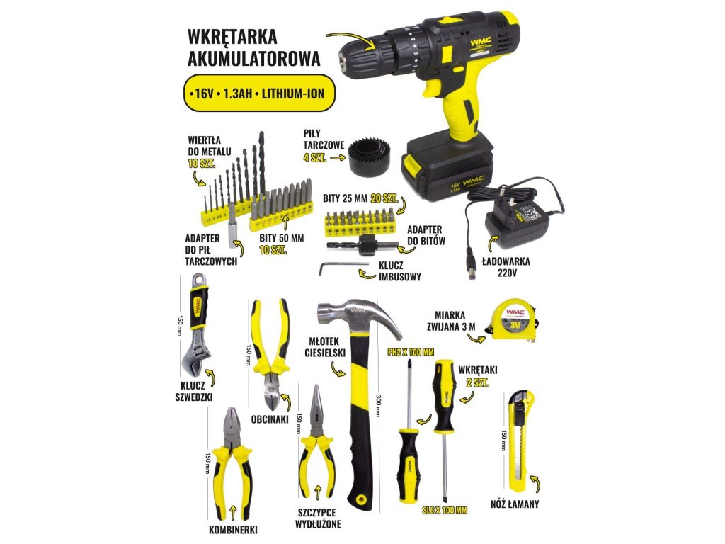 Set orodja je bil zasnovan ob upoštevanju potreb vsakogar domačega mojstra in profesionalne "zlate roke". Postavljeni pripomočki omogočajo hitro in učinkovito delo doma in v delavnici.