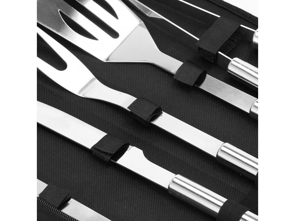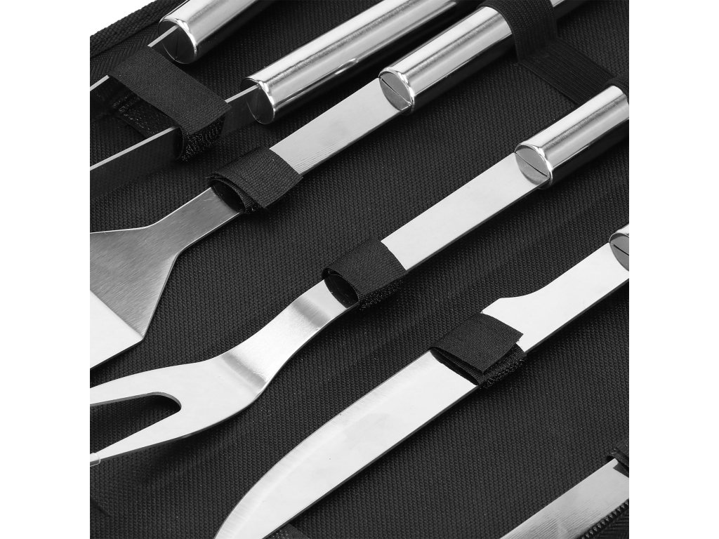 - Kovček ima znotraj elastiko in ježek, zaradi česar ima vsak dodatek za žar svoj prostor in ne leži prosto, trči v ostale in jih ne poškoduje.
