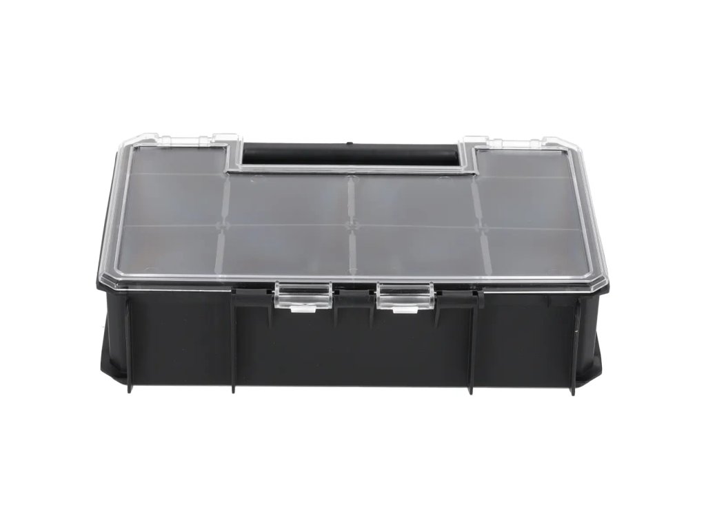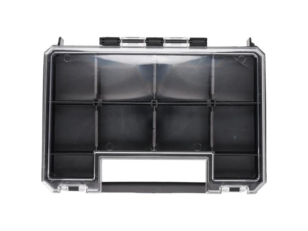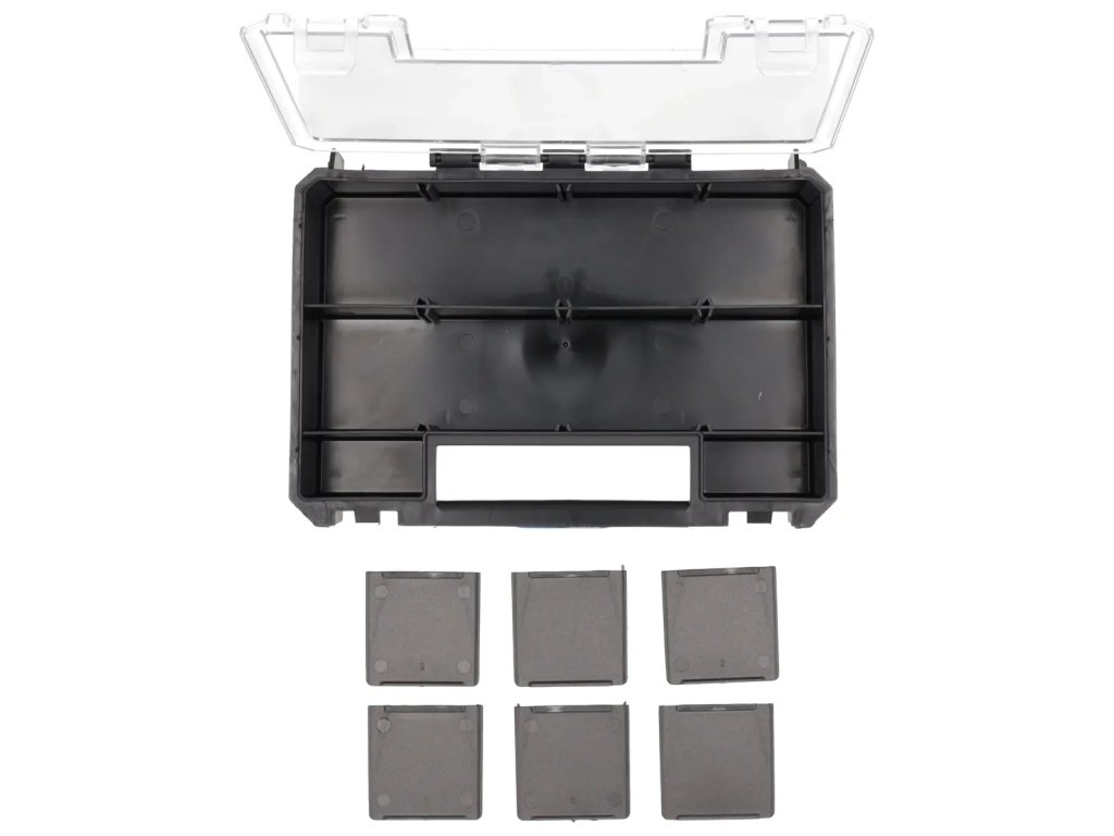 Škatla dimenzij 257x180x65 (dolžina, širina, višina). Zaradi kompaktnih dimenzij lahko v škatlo N0305 ali N0308 spravite od 4 do 6 organizatorjev N0310. Odtaljive pregrade omogočajo prilagoditev organizatorja vašim individualnim potrebam. Organizatorji so namenjeni shranjevanju manjših dodatkov, kot so vijaki, matice, vijaki.