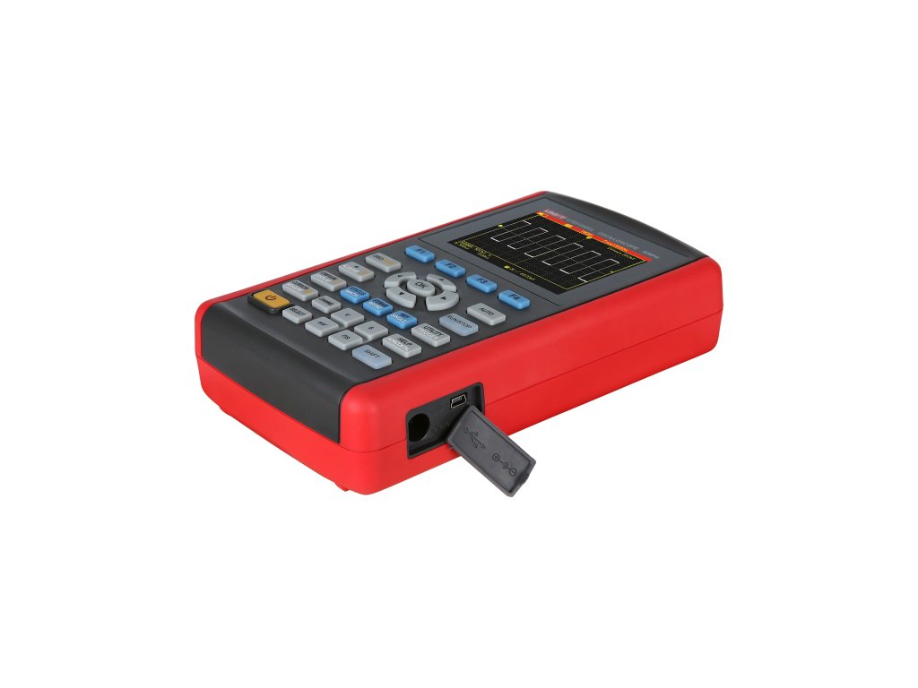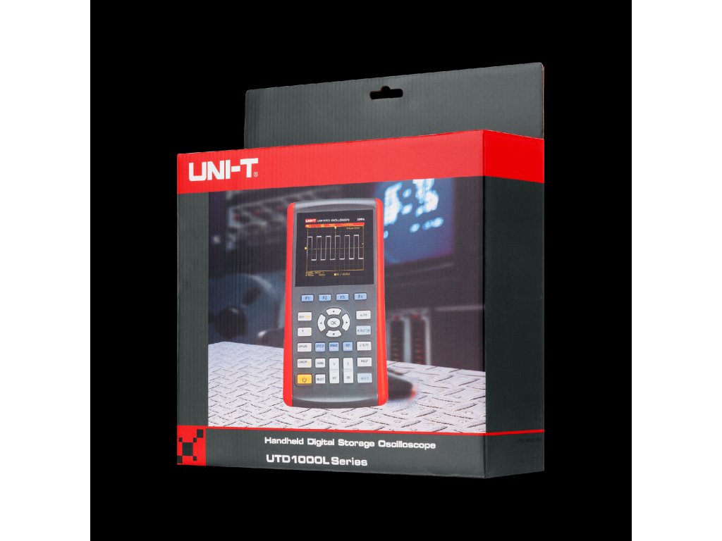 UTD1050CL je opremljen s 3,5-palčnim TFT LCD zaslonom z ločljivostjo 320x240 px, ki zagotavlja berljivo sliko in enostavno uporabo. Naprava je napajana z litij-ionsko baterijo kapacitete 3600 mAh, kar omogoča dolgotrajno delo na terenu brez potrebe po stalnem polnjenju. Kompaktne dimenzije in nizka teža (0,9 kg) omogočajo, da je osciloskop enostaven za prenašanje in uporabo v različnih delovnih okoljih.