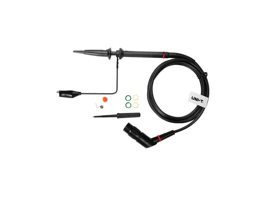 Osciloskop Uni-T UTD1050CL je dobavljen s kompletom dodatkov, vključno z merilnimi kabli, merilno sondo, USB kablom, napajalnikom in nastavki za merjenje toka. Mini USB vmesnik omogoča enostavno povezavo z računalnikom, kar olajša shranjevanje in analizo podatkov ter integracijo z drugimi orodji in programsko opremo.