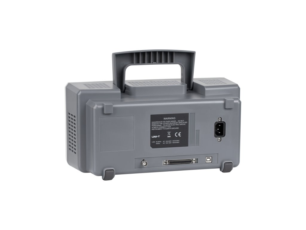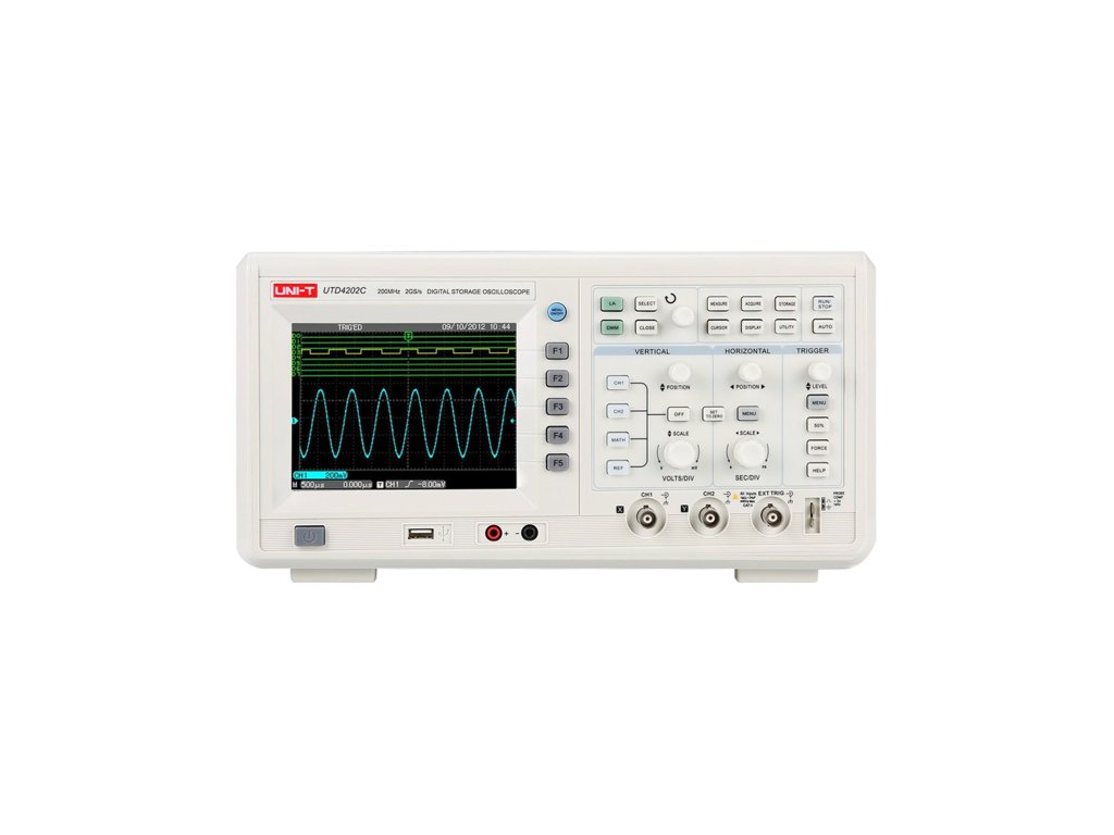 PARAMETRI GLAVNO Pasovna širina analogna: 200 MHz Čas naraščanja: <=1,8 ns Število kanalov: 2 Vzorec frekvence: 2,5 GS/s Globina pomnilnika: 24 Mpts Hitrost zajema valovne oblike: 150 000 wfms/s Osnova časa: 2 ns/div ~ 50 s/div Občutljivost navpičnega odklona: 2 mV/div ~ 5 V/div Način zapisovanja merilnih podatkov: nastavitev, val, bitmapa, CSV Načini sproženja: rob, širina impulza, video signal, izmenično Matematične operacije: seštevanje, odštevanje, množenje, deljenje, inverzija faze Samodejno merjenje 24 parametrov Vmesniki: USB gostitelj, USB naprava, Pass/Fail SPLOŠNE ZNAČILNOSTI Napajanje: 100 V~240 V AC rms, 45 ~ 440 Hz Zaslon: 7” TFT LED (800x480 px) Dimenzije: 336 x 117 x 174 mm Teža: 3,8 kgPARAMETRI GLAVNO