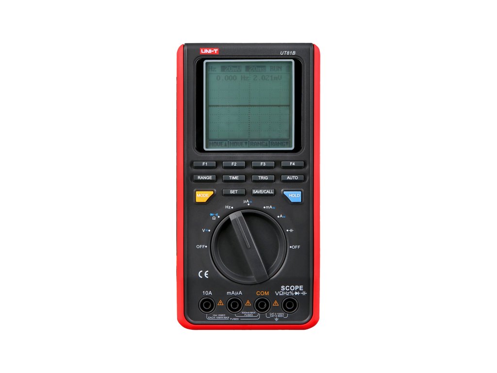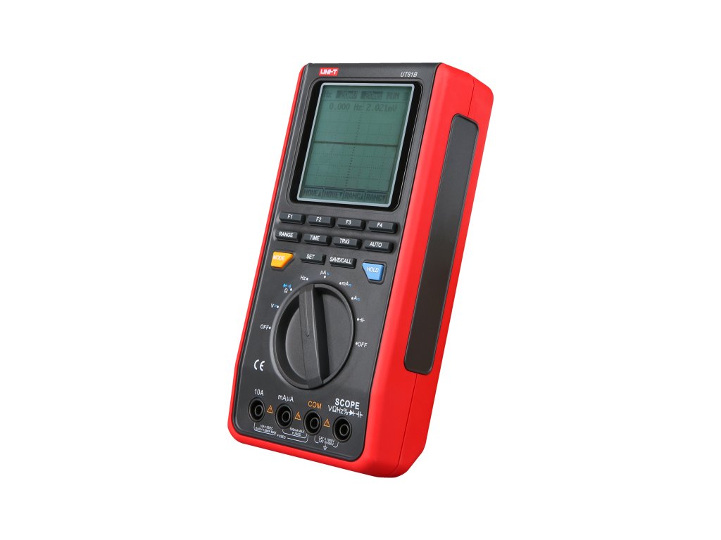 PARAMETRI OSKILOSKOPA Širina pasu: 8 MHz Vzorčenje: 40 MS/s Natančnost navpičnega odklona: ±(5%+1) Občutljivost navpičnega odklona: 20 mV/div~500 V/div (1-2-5) Obseg osnove časa: 100ns/div -5s/div (1-2-5) Natančnost osnove časa: ±(0,01%+1) OBMOČJA MERITVE Enosmerna napetost DC: 400 mV / 4 V / 40 V / 400 V / 1000 V ±(0,8%+8) Izmenična napetost AC: 4 V / 40 V / 400 V / 750 V ±(1%+15) Enosmerni tok DC: 400 µA / 4000 µA / 40 mA / 400 mA / 4 A / 10 A ±(1%+8) Izmenični tok AC: 400 µA / 4000 µA / 40 mA / 400 mA / 4 A / 10 A ±(1,5%+8) Upor: 400 Ohm / 4 kOhm / 40 kOhm/ 400 kOhm / 4 MOhm / 40 MOhm ±(1%+5) Kapaciteta: 40 nF / 400 nF / 4 µF / 40 µF / 100 µF ±(3%+8) Frekvenca: 10 Hz ~ 10 MHz ±(0,1%+3) Polnilni faktor: 0,1~99,99% Preizkus diod Preverjanje neprekinjenosti kroga DODATNE FUNKCIJE Samodejna/ročna menjava merilnih obsegov Prenos podatkov Samodejni izklop Pomnilnik: 10 zaslonov in nastavitev Nastavitve kontrasta in svetlosti Indikator nizke ravni baterije Osvetljen LCD zaslon Največje število odčitkov: 4000 SPLOŠNE ZNAČILNOSTI Optični vmesnik Vhodna impedanca enosmerne napetosti: približno 10 MOhm Napajanje: 4x baterija 1,5 V (R6) Zaslon: 60 x 60 mm (160 x 160 px) Teža: 498 g Dimenzije: 200 x 100 x 48 mm Dodatki: Omrežni napajalnik, baterije, merilni kabli, krokodili, USB kabel, etuiPARAMETRI OSKILOSKOPA