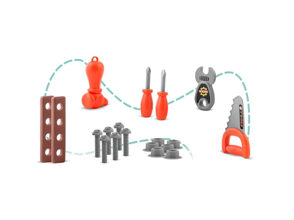 - številni dodatki (ključ, kladivo, žaga, vijaki, izvijači in trakovi za domače mojstre),
