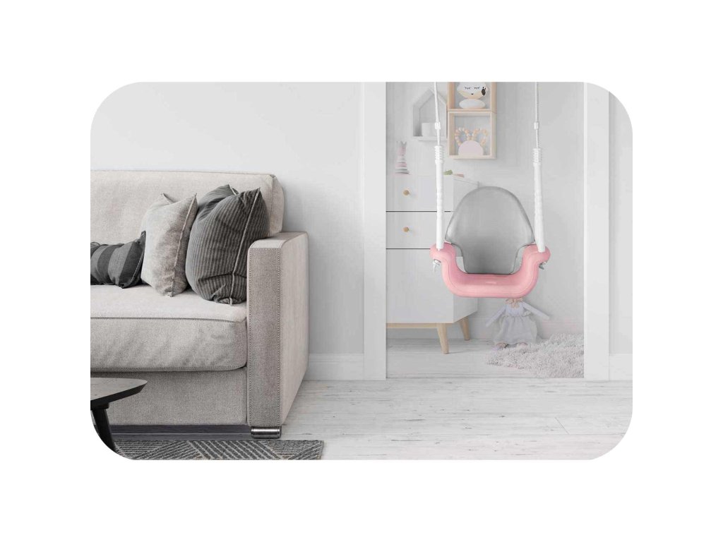 - Močne vrvi z dolžino do 130 cm je mogoče nastaviti s pomočjo kovinskih sponk, vrvi so dodatno zaščitene s posebnimi plastmi, ki ščitijo otroške roke pred morebitnimi odrgninami in povečujejo stabilnost pri guganju.