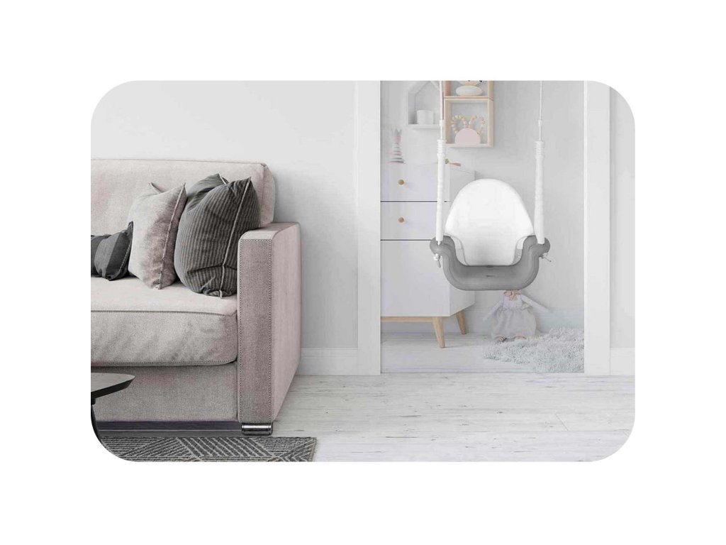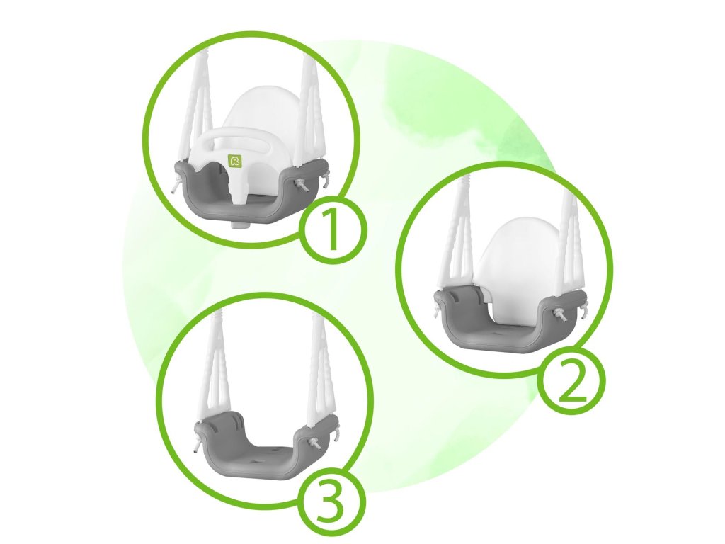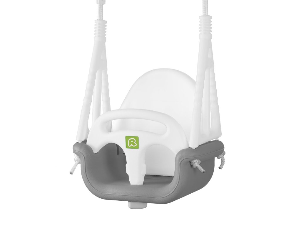 - Močne vrvi dolžine do 130 cm je mogoče nastavljati s pomočjo kovinskih zaponk, vrvi so dodatno zaščitene s posebnimi plastmi, ki ščitijo otroške roke pred morebitnimi odrgninami in povečujejo stabilnost pri guganju.