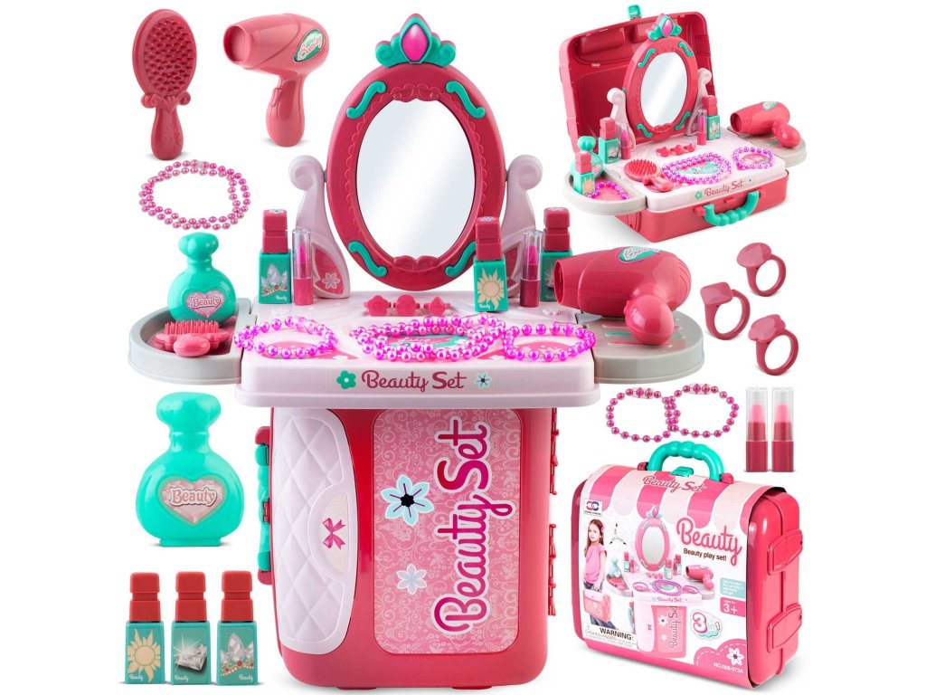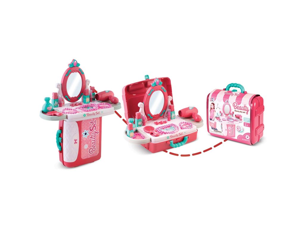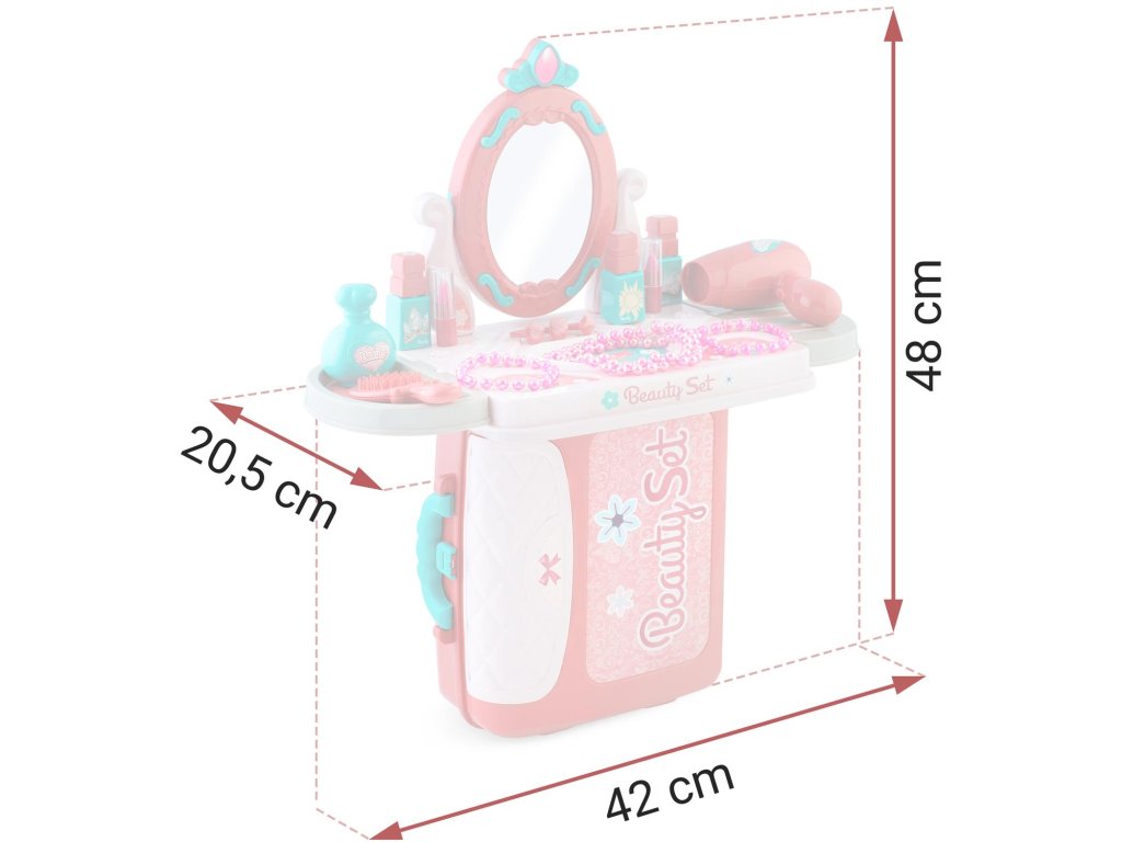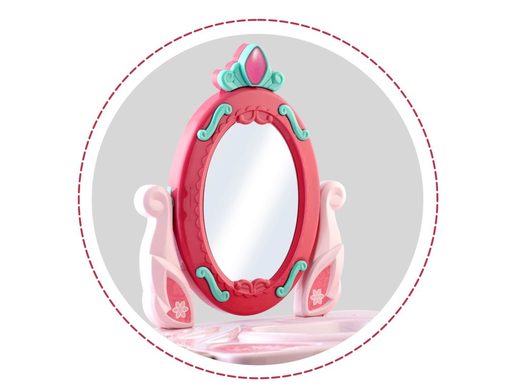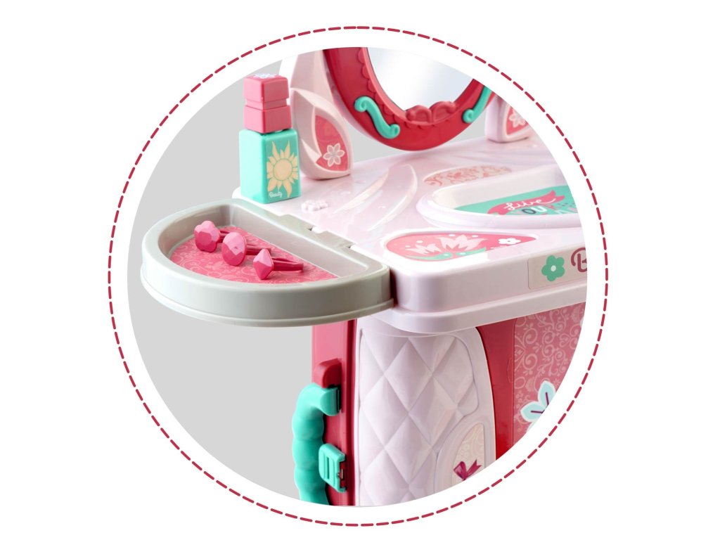 Premični deli toaletnih dodatkov omogočajo ustvarjanje vtisa avtentičnosti, zaradi česar se vsako dekle lahko počuti kot odrasla dama. Njena lastna toaletna miza bi lahko postala za dolgo časa ena njenih najljubših igrač.
