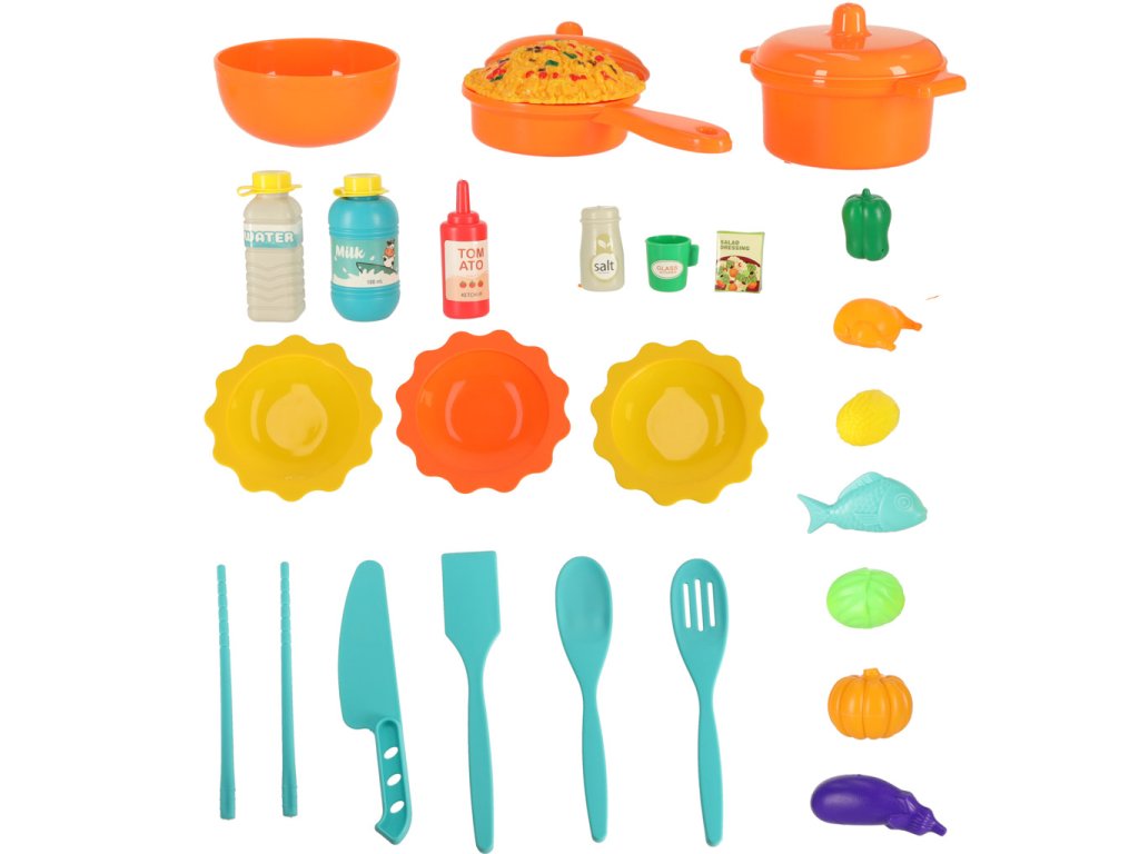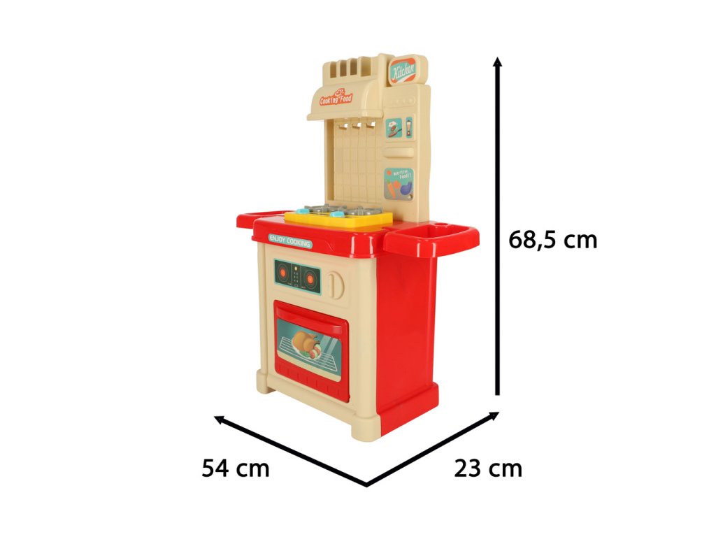 PLASTIČNA KUHINJA ZA OTROKE LAHKA VELIKA 44 ELEMENTOV Plastična kuhinja za otroke: Za večjo realističnost je kuhinja opremljena z osvetljenimi gorilniki! Bo našla odličen prostor v vsaki otroški sobi! Zahvaljujoč številnim priloženim delom bo zagotovila ure zabave! Tehnične specifikacije: Material: plast Starost: 3+ Število elementov: 44 Napajanje: 3x AA baterije (niso vključene v komplet) Dimenzije: Kuhinja (V x Š x G): 68,5 cm x 54 cm x 23,5 cm Višina mize od tal: 37 cm Pribor: 10,5 cm Lonec s pokrovom: 5,5 cm x 9 cm Embalaža: 39,5 cm x 62 cm x 13 cm Vsaka mala kuharica potrebuje predvsem pravo opremo - točno tako, kot jo ima ta kuhinja! V njej boste našli veliko priložnosti za skupno igro! Barvit dizajn privlači pozornost ne samo otrok, ampak tudi odraslih! Sporočite svojemu otroku novo razvijajočo strast! Vsebina seta: 1: Kuhinja za sestavljanje Hrana (primeri: riba, zelje, paprika, piščanec) Krožniki x3 Lonec s pokrovom Ponev s pokrovom Skleda Palčke Pribor Skodelica Nalepke Izdelek je zapakiran v kartonsko škatlo.