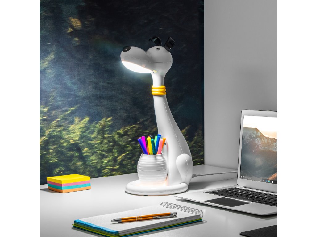 Naprava je oblikovana kot bel pes, zato bo zagotovo pritegnila oboževalce teh prijaznih živali. Če pa je vaš otrok ljubitelj mačk, izberite model KOM1014.1.
