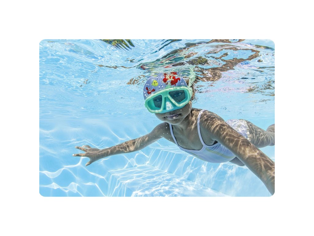 Sedaj lahko potapljaš in uživaš v vodnih vragolijah do polnosti! Plavalna maska ima polikarbonatne leče.