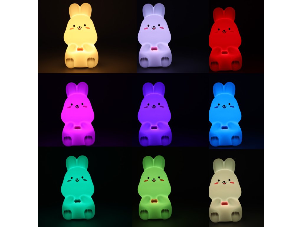 Otroška silikonska LED nočna svetilka bela z roza zajčkom