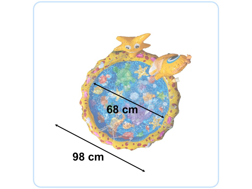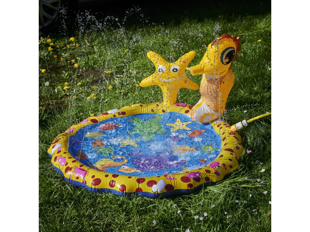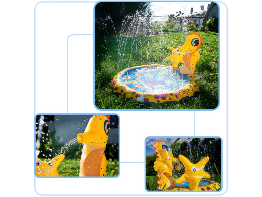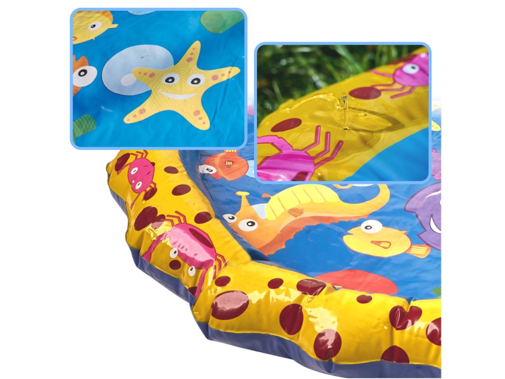 Oblikovanje vodne fontane bo zagotovo pritegnilo pozornost vašega otroka - privlačna rumena barva, ljubka grafika z morskimi živalmi in dve figurici v obliki morskega konjička in morske zvezde ne bosta pustili nobenega otroka ravnodušnega!