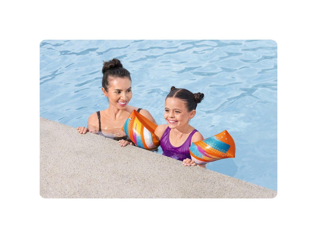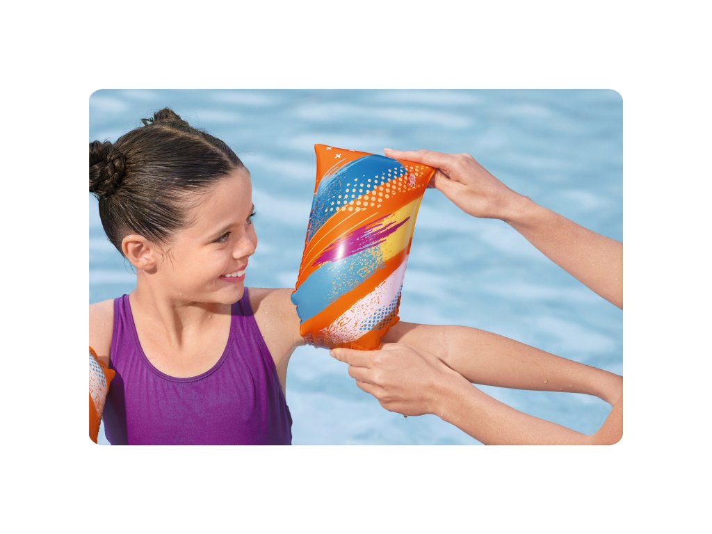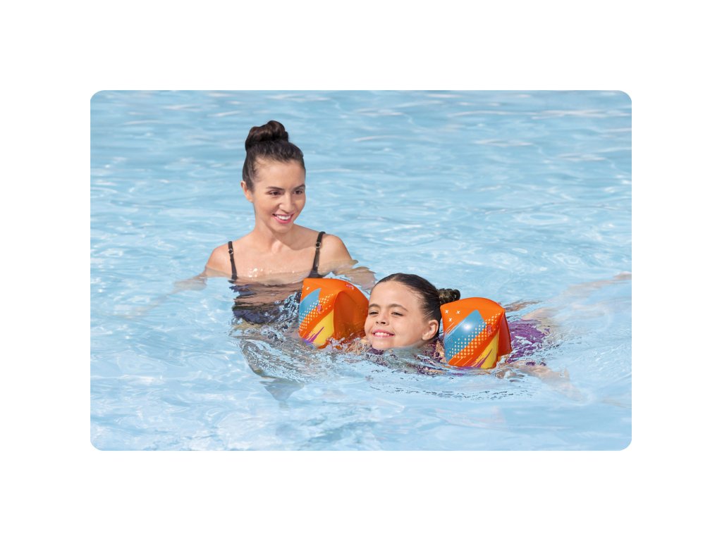 Otroški rokavčki za plavanje Bestway so dvokomorni, kar zanesljivo ohranja otroka na vodi.