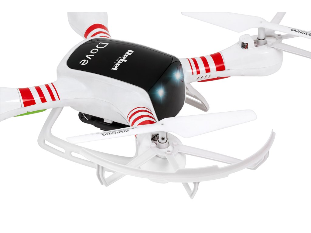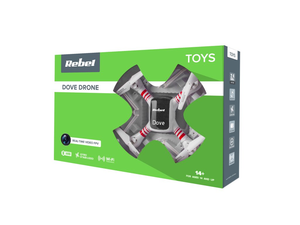 Pri tem pomagata 6-osni stabilizator ter funkcija auto trim, ki zagotavljata stabilno in natančno pilotiranje. Poleg tega daljinski upravljalnik z dosegom do 70 m olajša nadzor nad napravo. Dodatne prednosti sta funkciji kompasa in vrnitve domov, s katero lahko spraviš dron nazaj na izhodišče. Prednost Dove je okretnost, kar omogoča začetek iz metanja in izvajanje zračnih akrobacij, ki popestrijo zabavo. Naprava je dodatno opremljena z LED diodami, tako da lahko zabava traja do poznih večernih ur, brez skrbi, da bi jo izgubil iz vidnega polja.
