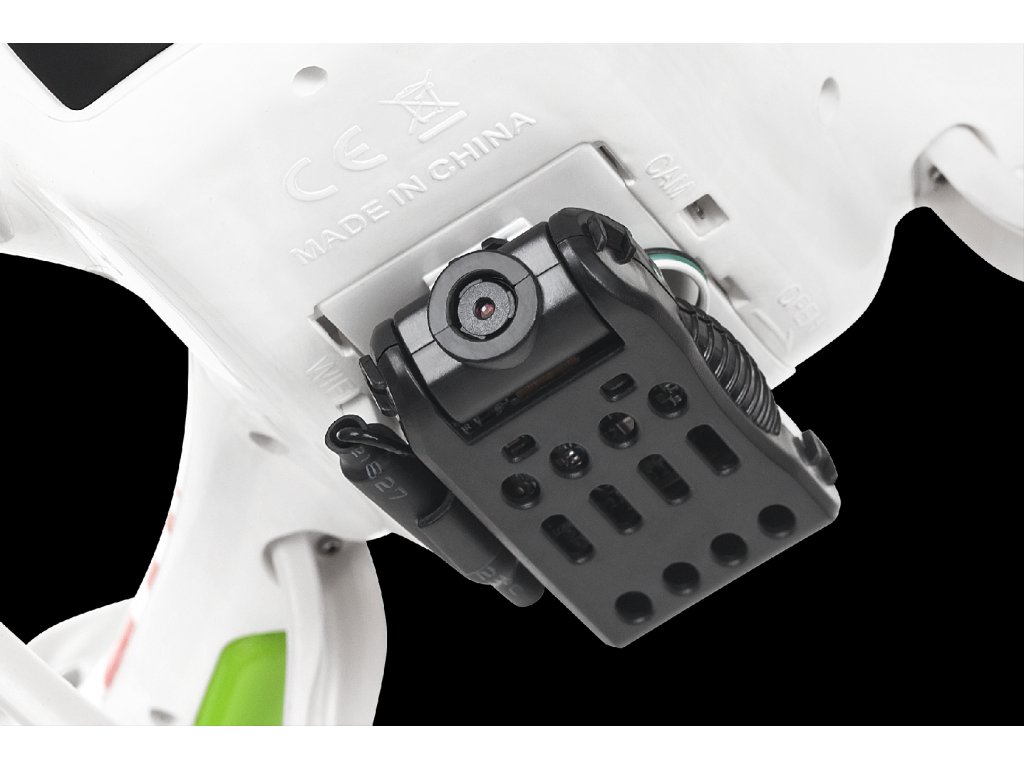 Dron Dove ima v kompletu kamero 1 Mpx z režo za microSD kartico, na kateri lahko shranjuješ posnetke v ločljivosti do 1280x720 px. Poleg tega je za napravo mogoče prenesti namensko aplikacijo, ki preko Wi-Fi povezave omogoča ne samo upravljanje drona z nivoja pametnega telefona, temveč tudi ogled v živo tega, kar kamera snema - na zaslonu telefona ali preko VR očal.